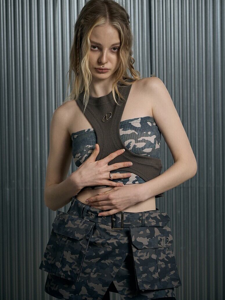 在庫少なめ!★IVE ウォニョン 着用!!【ILLIO】CAMOUFLAGE DETACHABLE WRAP SKIRT