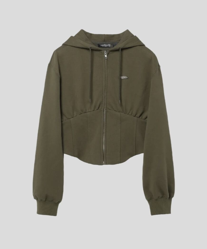 条件付き数量限定トレカ付き!★IVE レイ 着用!!【OPENING PROJECT】W Corset Hood Zip-Khaki