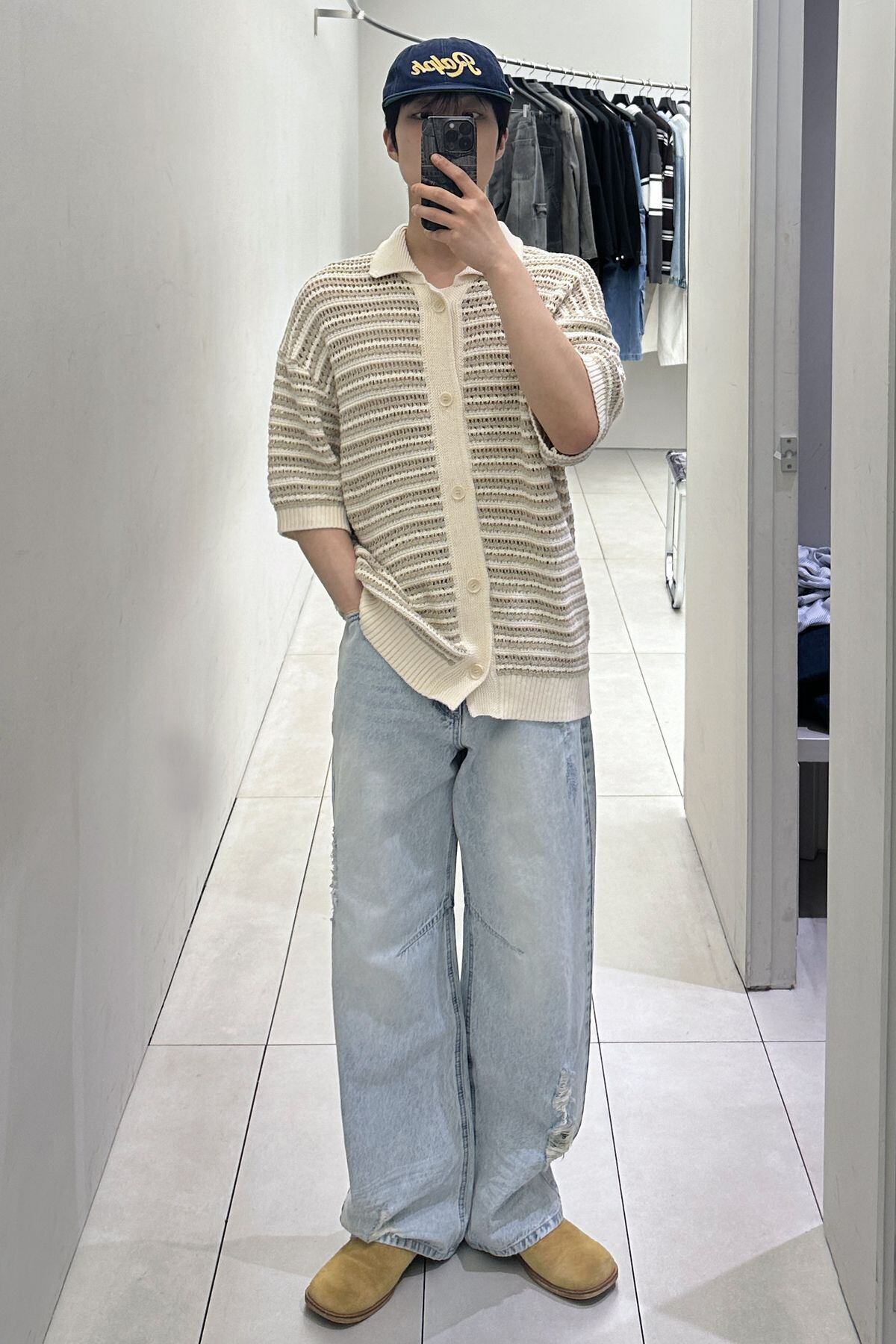 ★SHINee キー 着用!!【INSILENCE】Short Sleeve Collar Cardigan ASH BEIGE