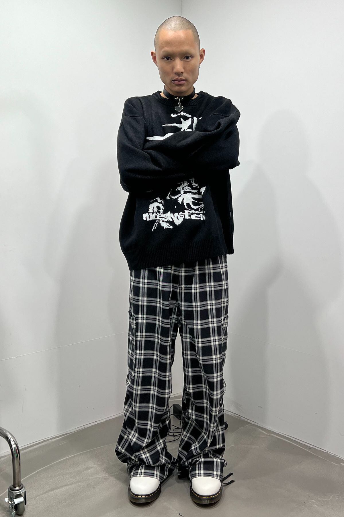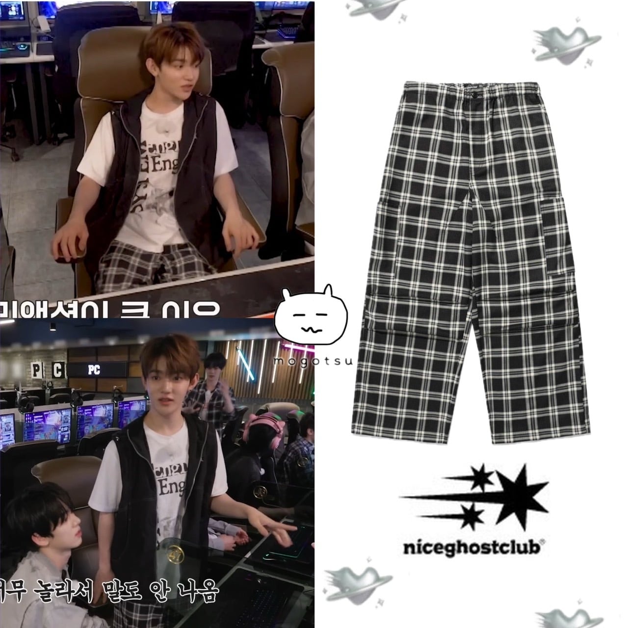 ★ZEROBASEONE ジャンハオ 着用!!【NICEGHOSTCLUB】CHECK PARACHUTE CARGO PANTS_BLACK