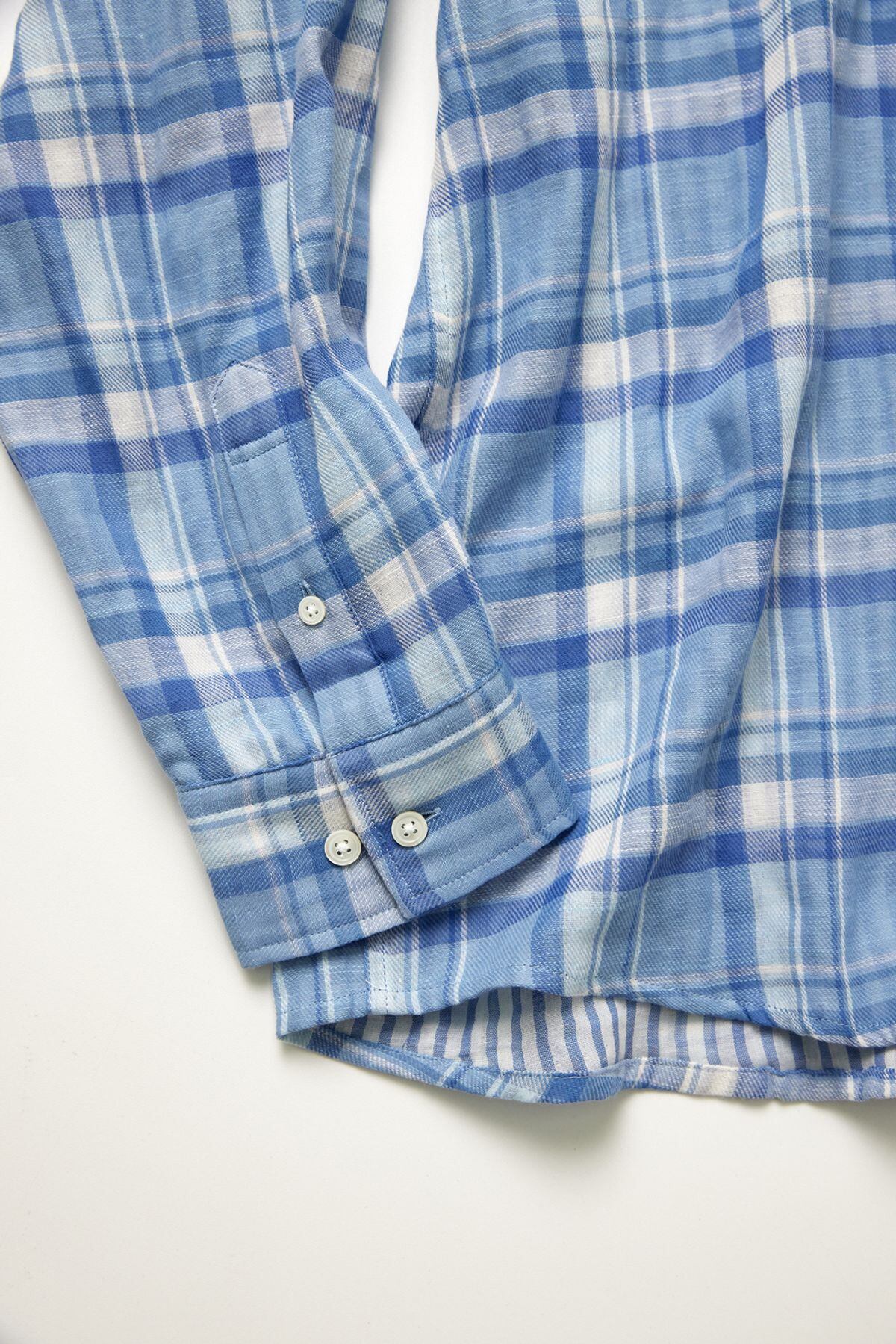 二重紙チェックファブリックが引き立つシャツです。