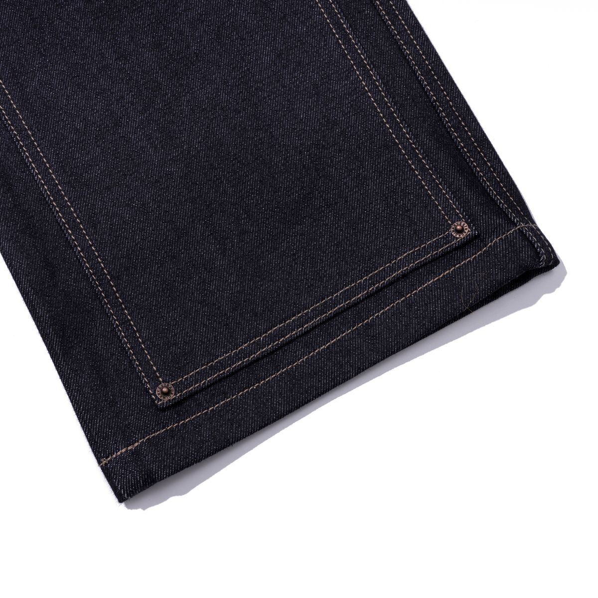 - ファスナーフライ型、裾までつなげた膝パッチ