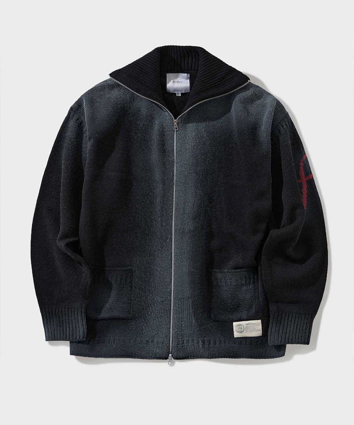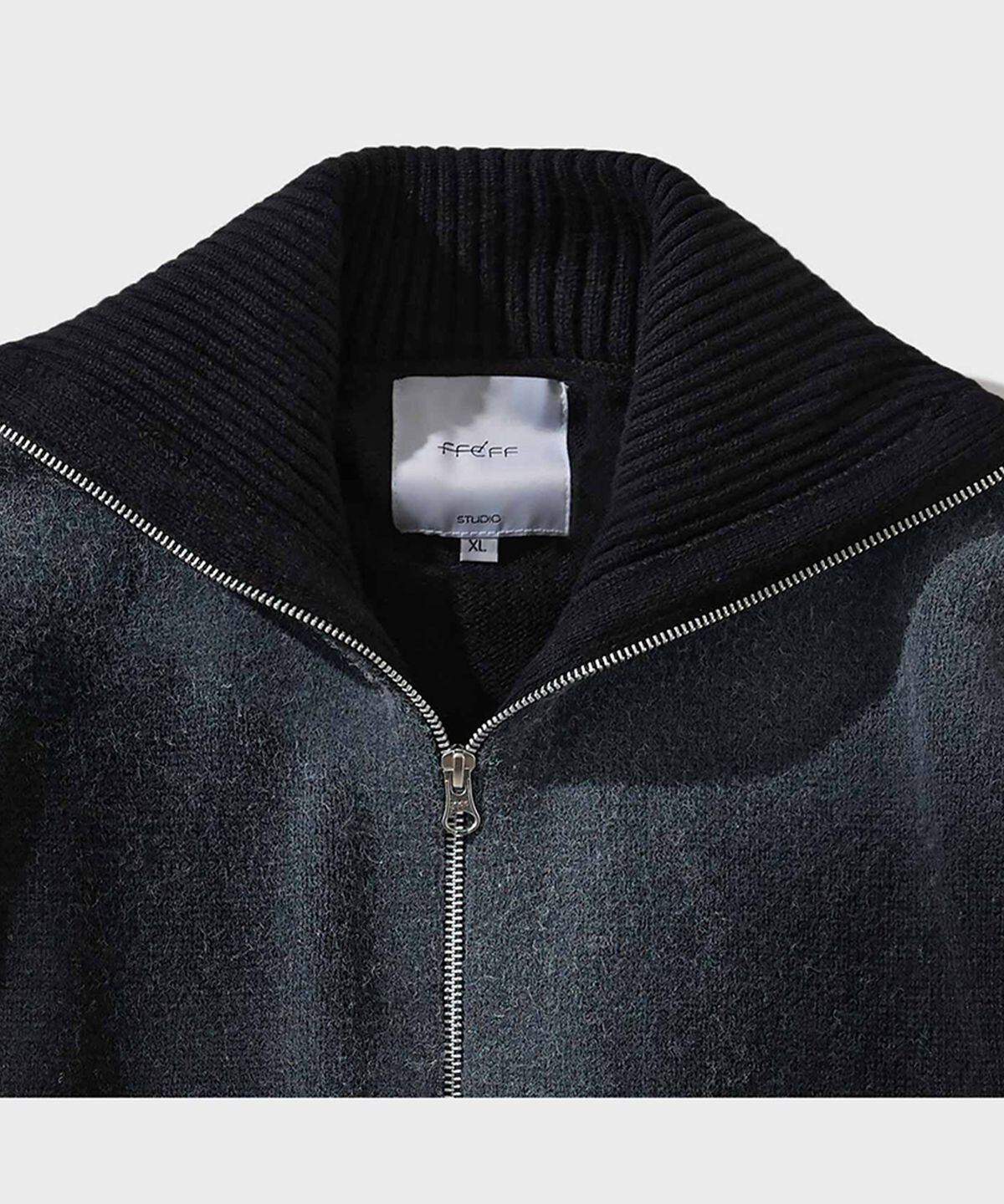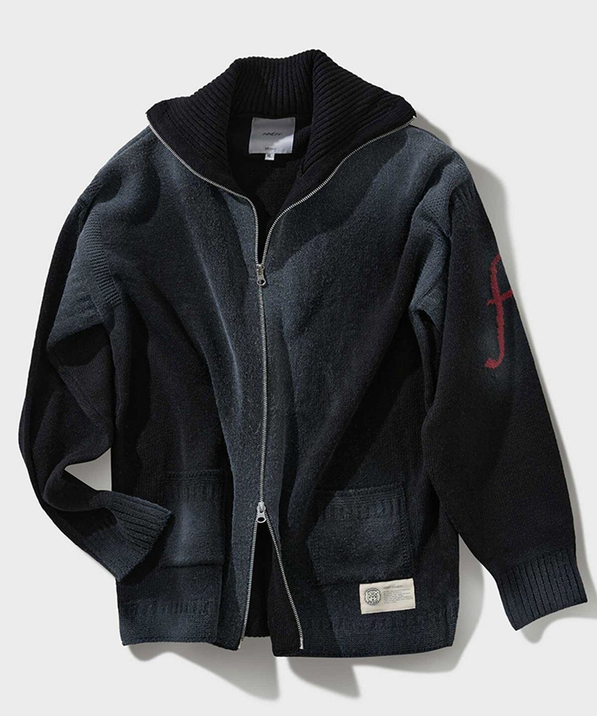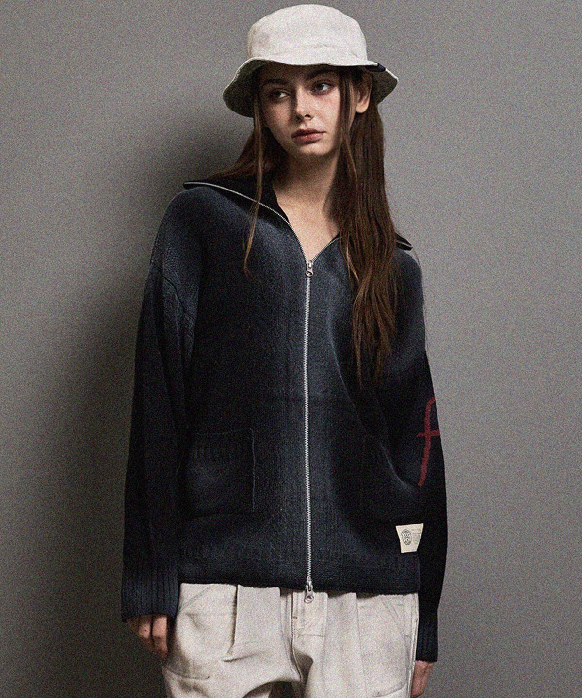Vintage washed Flogozip up cardiganは50%ウールと50%アクリル素材を適切に混ぜ合わせたジップアップカーディガンです。