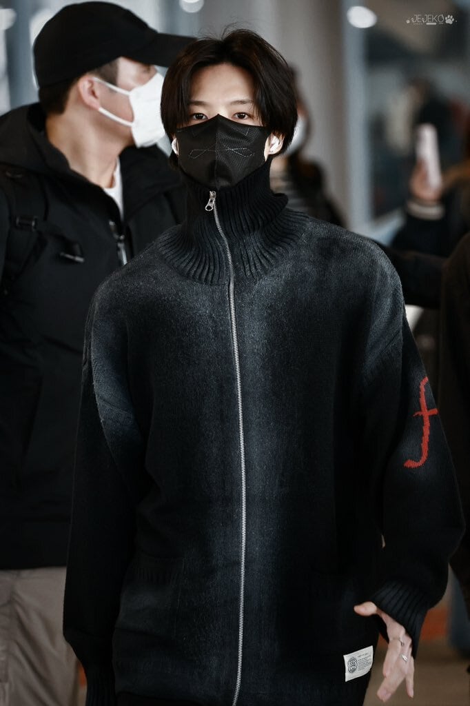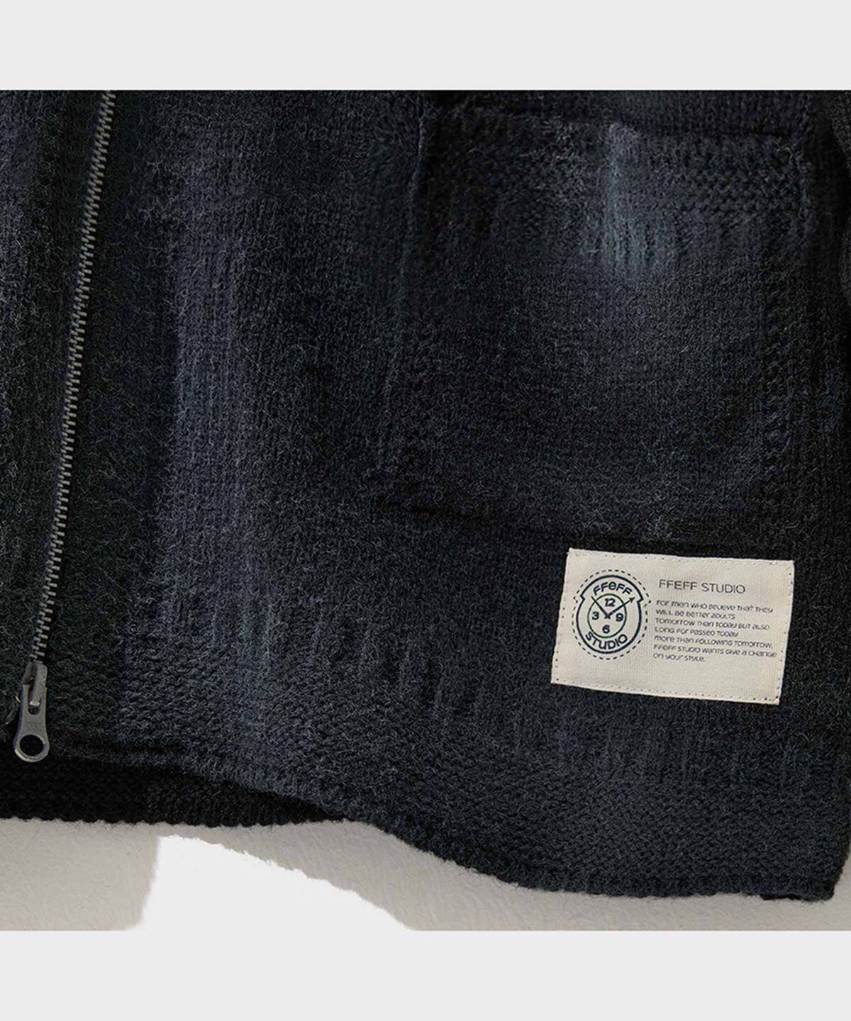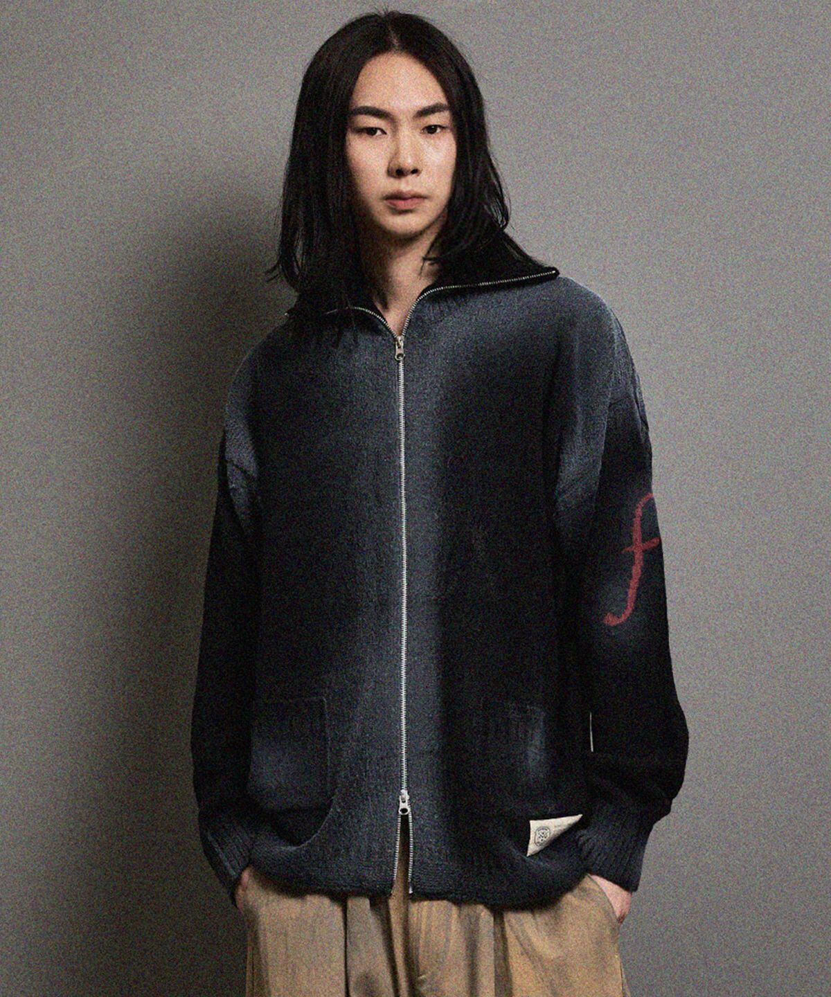 ★NCT DREAM ジェノ 着用!!【FFEFF STUDIO】ビンテージウォッシング エフロゴ ジップアップカーディガン(ブラック)