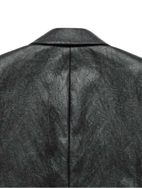 高級感あふれるビーガンレザー素材を使用し、着用時に軽くて快適に製作されたクロップ丈のジャケットです。