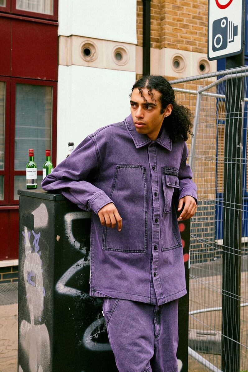 デニムダイイングのセットアップで制作されており、シャツアウターの代わりのスタイリングが可能です。