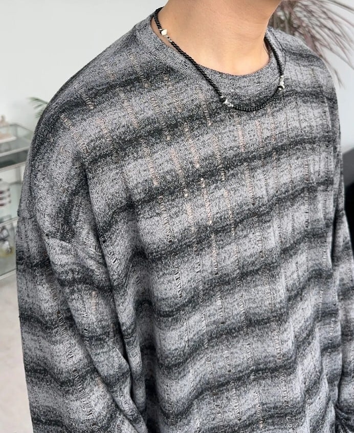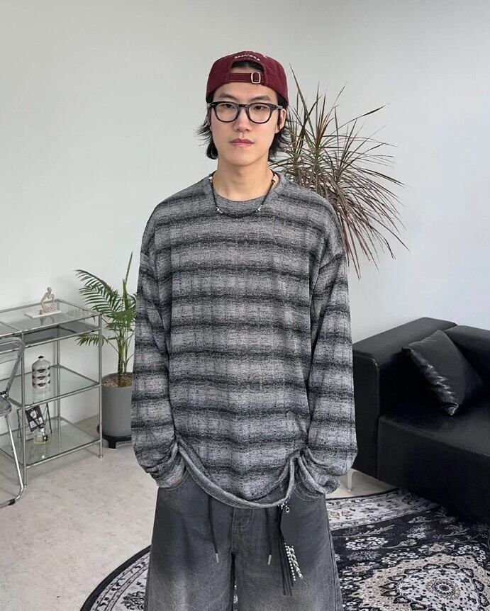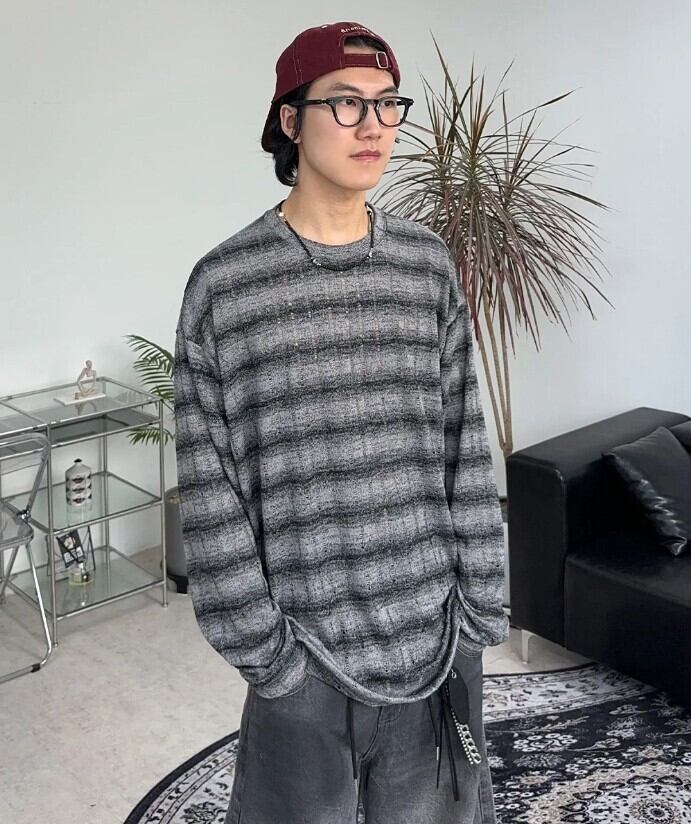 ★Stray Kids アイエン 着用!!【SATIIIZ】イーサン ストライプ ニット ロング スリーブ