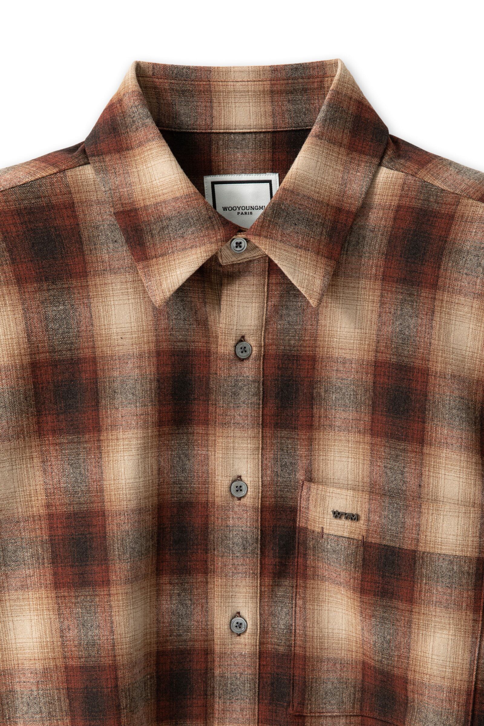 ★SEVENTEEN エスクプス 着用!!【WOOYOUNGMI】ブラウン チェック バック ロゴ シャツ
