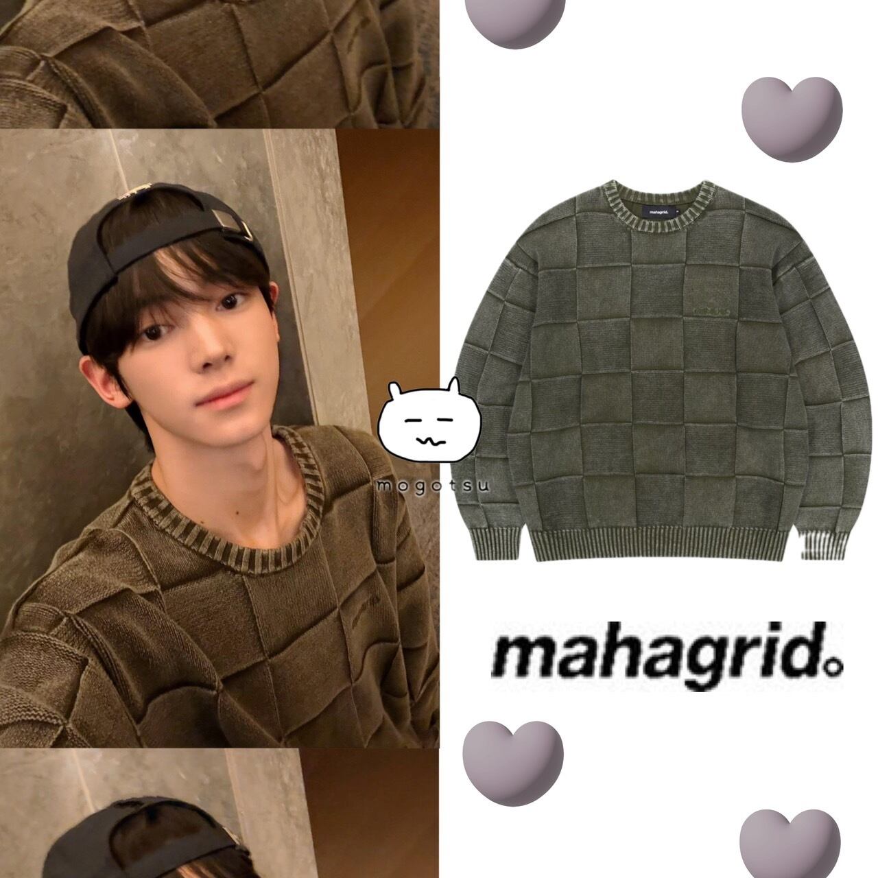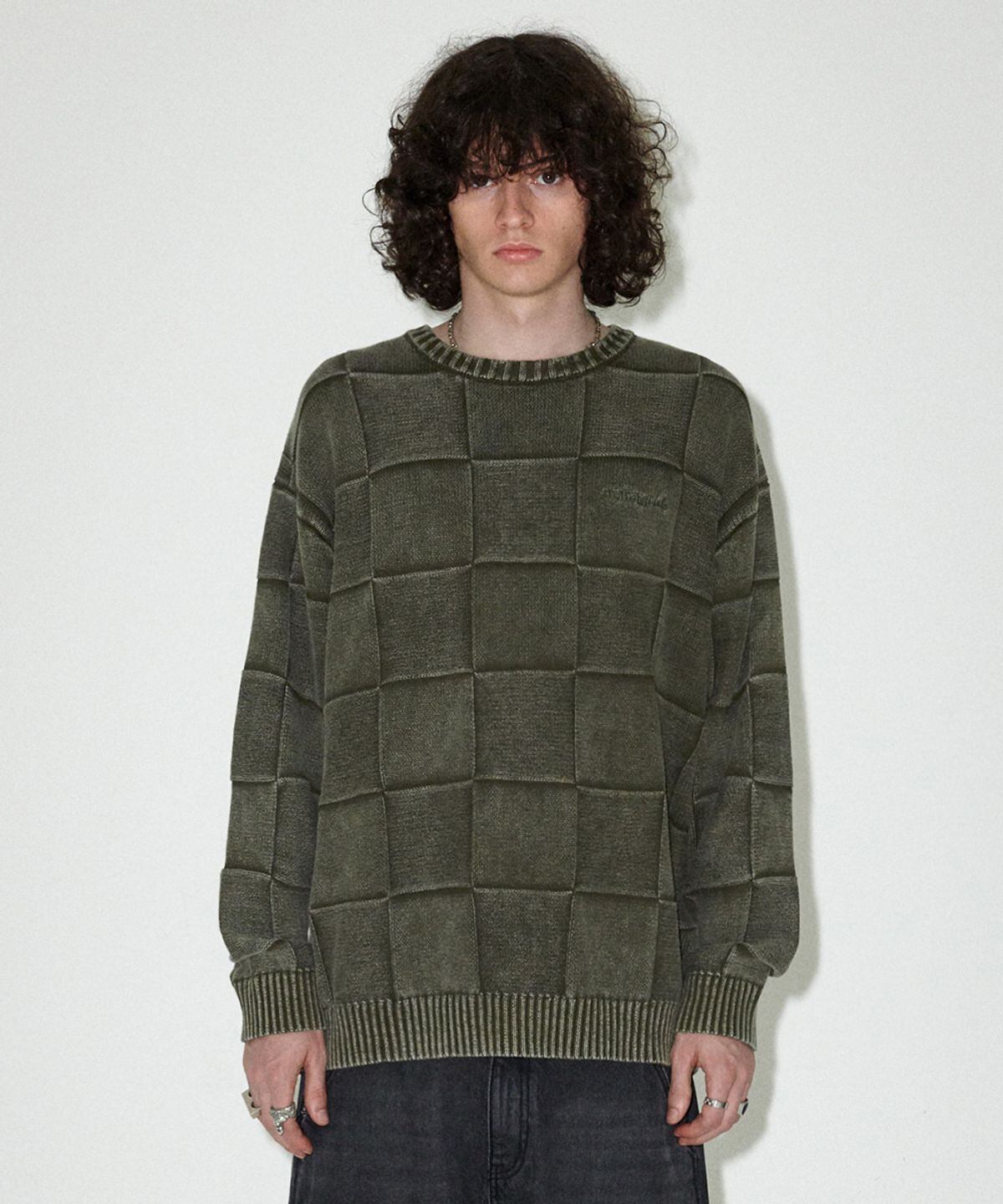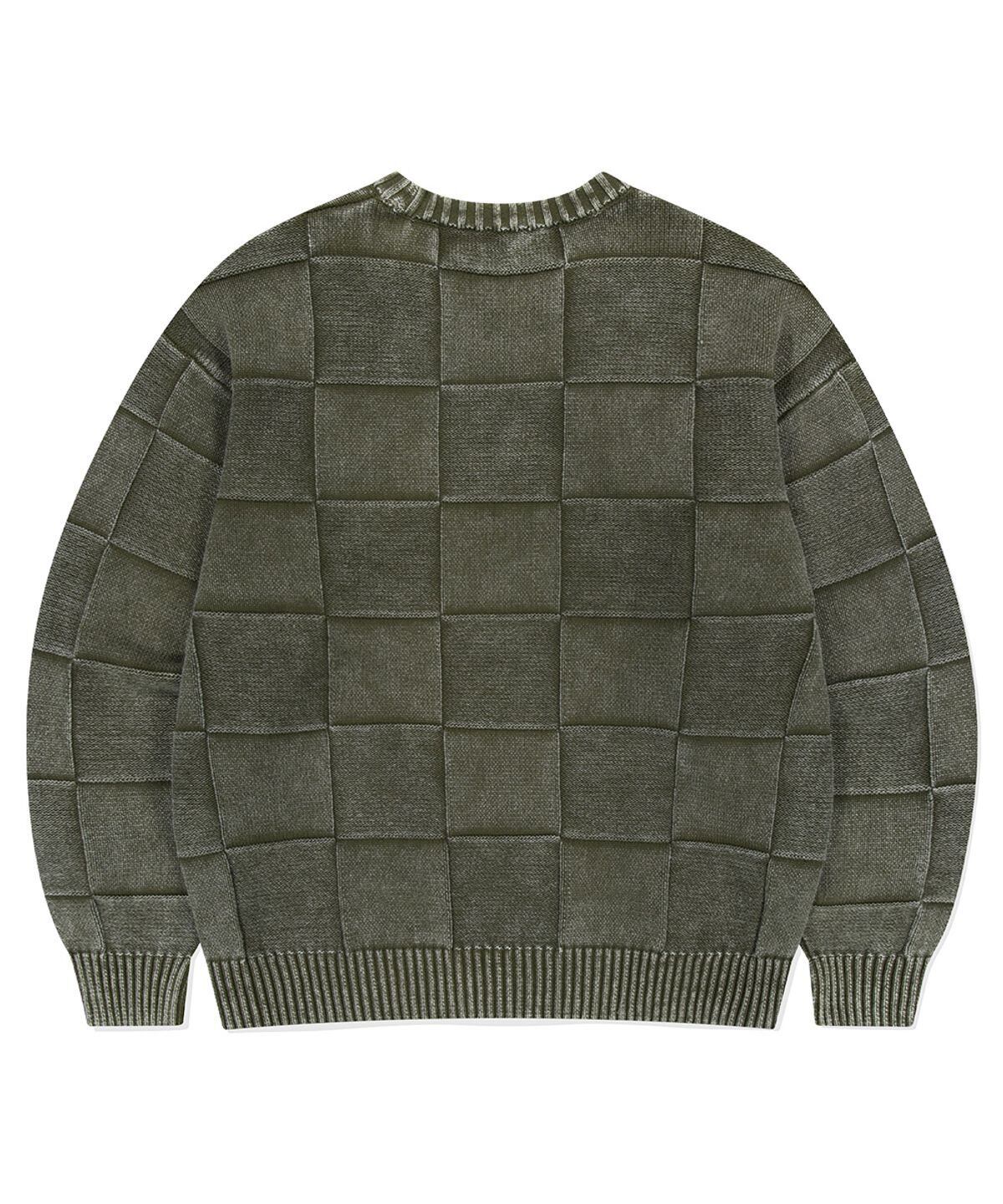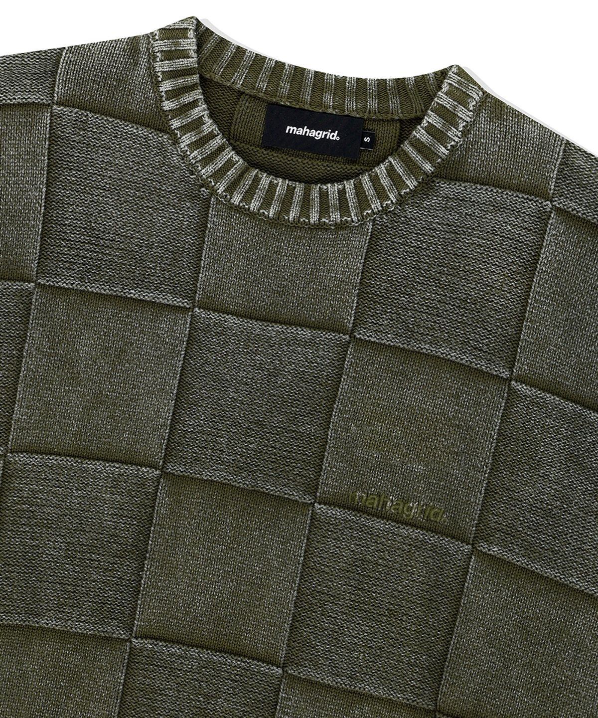 ★TWS ハンジン 着用!!【MAHAGRID】PIGMENT CHECKERBOARD KNIT SWEATER KHAKI