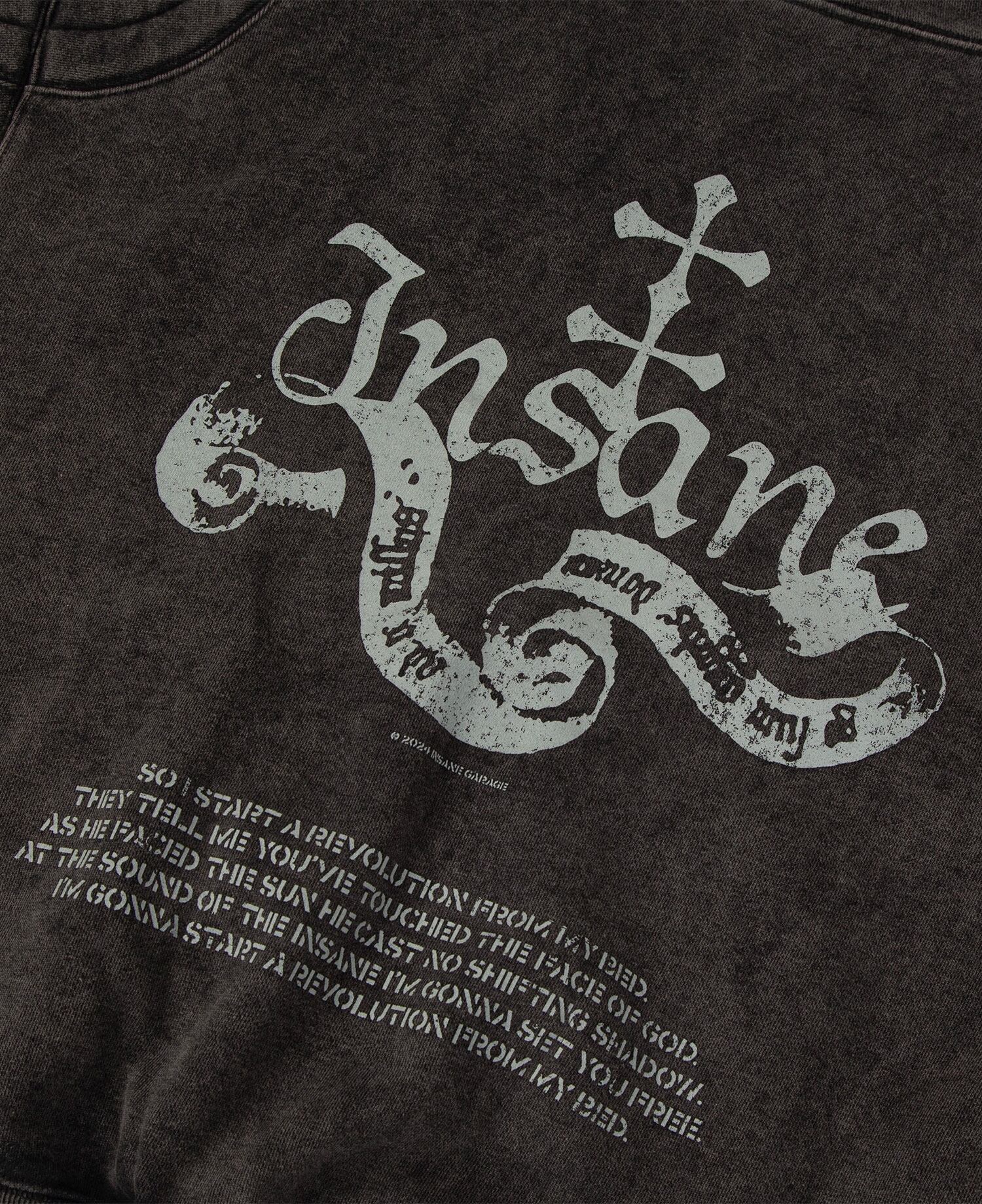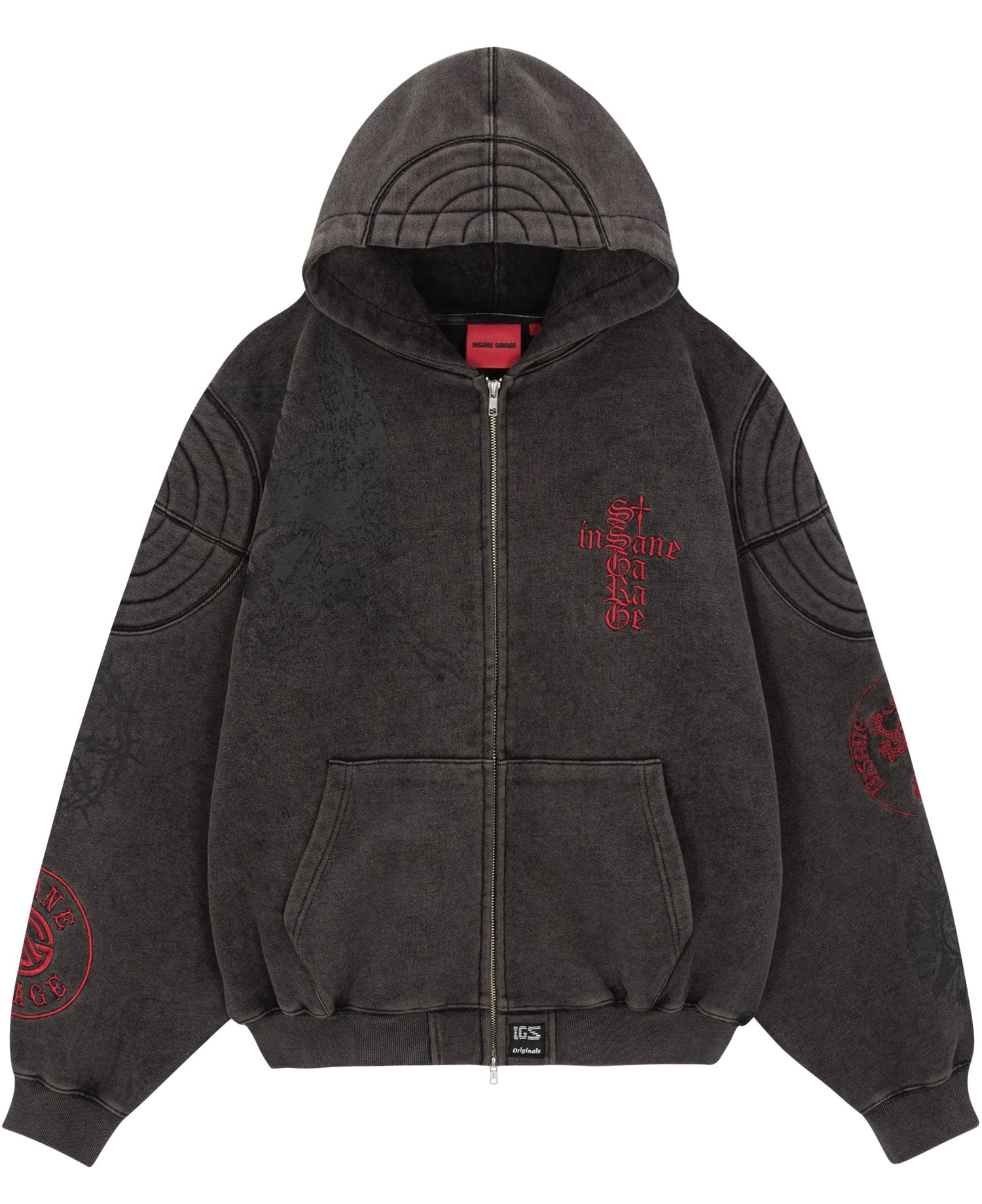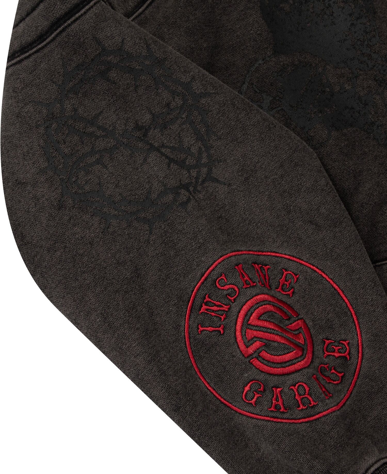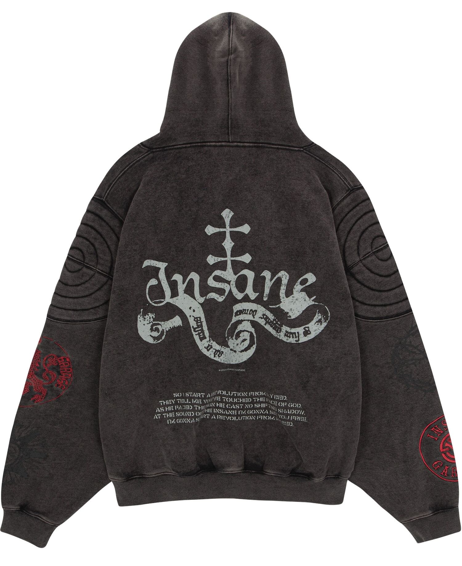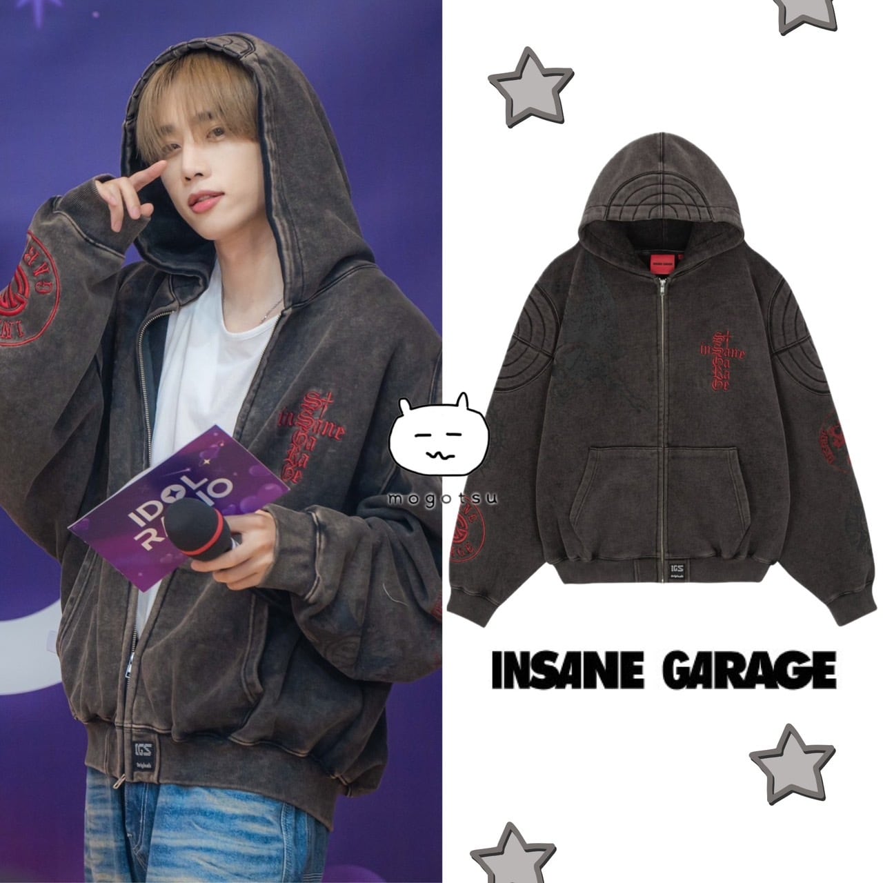 ★THE BOYZ ソヌ 着用!!【INSANE GARAGE】INSANE EMBROIDERED PADDED SHOULDER HOODIE_VINTAGE BLACK