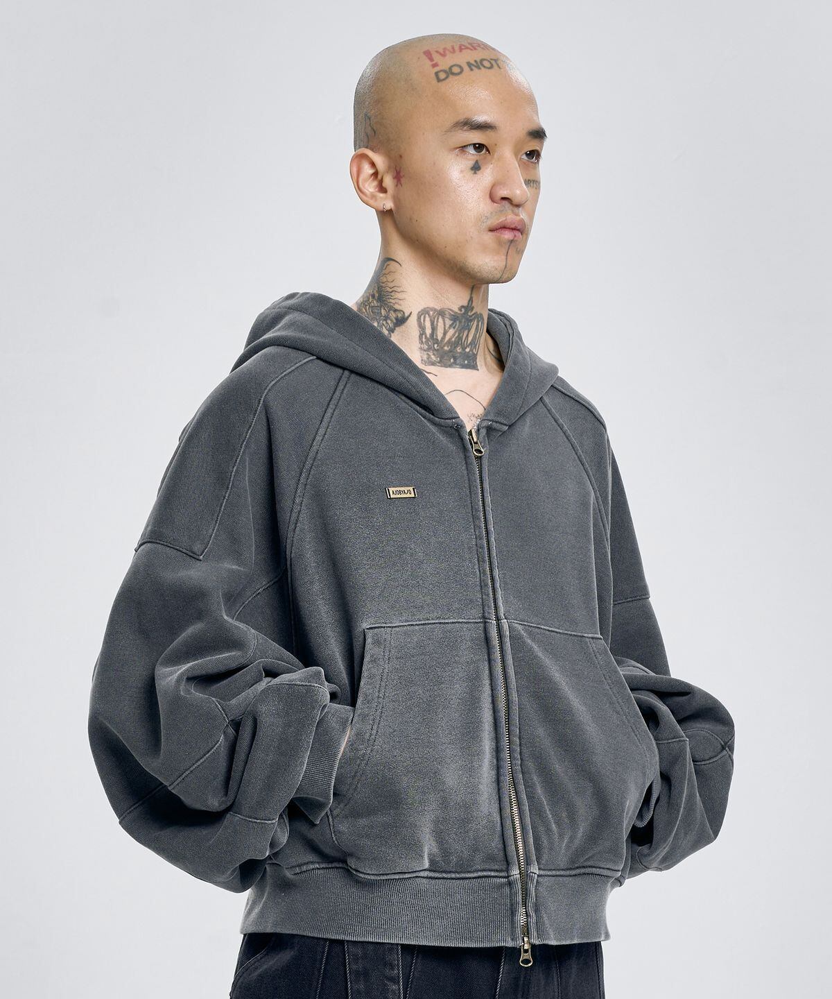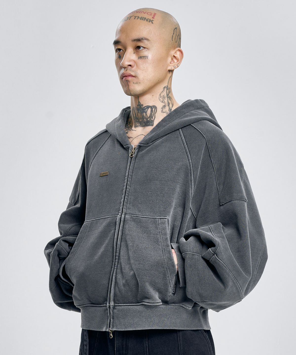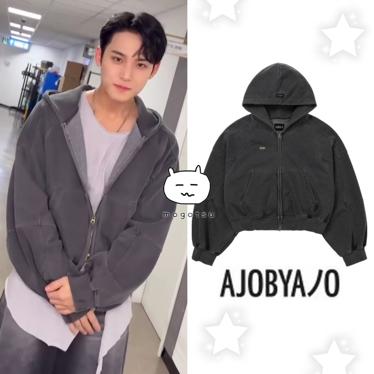★SEVENTEEN ミンギュ 着用!!【AJOBYAJO】Vintage Pigment Zip-Up Hoodie [CHARCOAL]