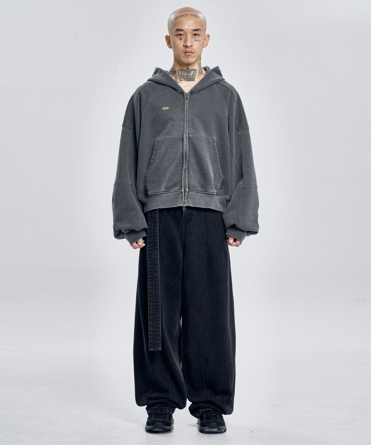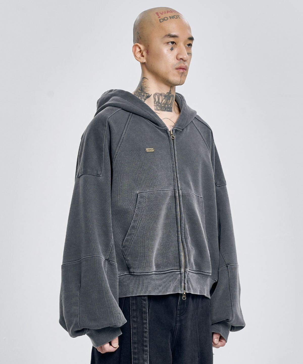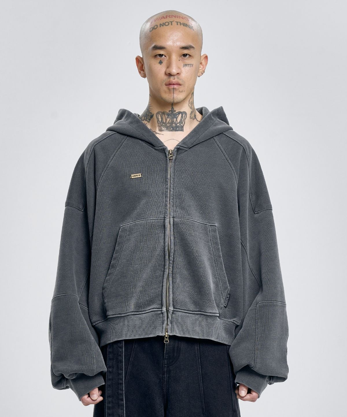 ★SEVENTEEN ミンギュ 着用!!【AJOBYAJO】Vintage Pigment Zip-Up Hoodie [CHARCOAL]