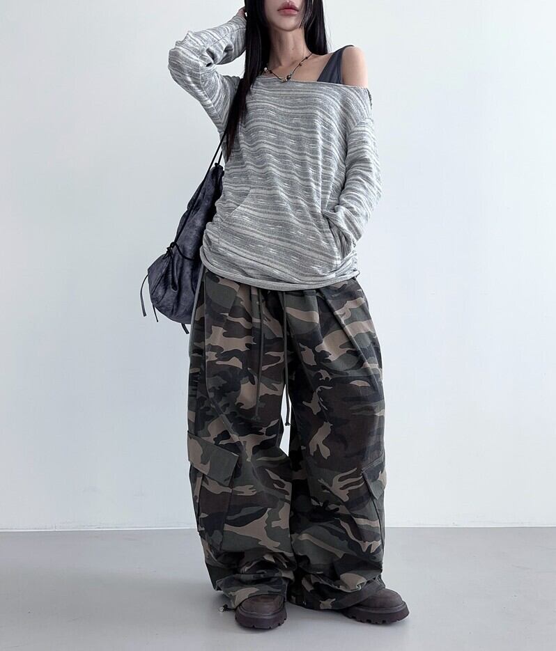 ★aespa カリナ 着用!!【LOWEAR】camo cargo banding pants