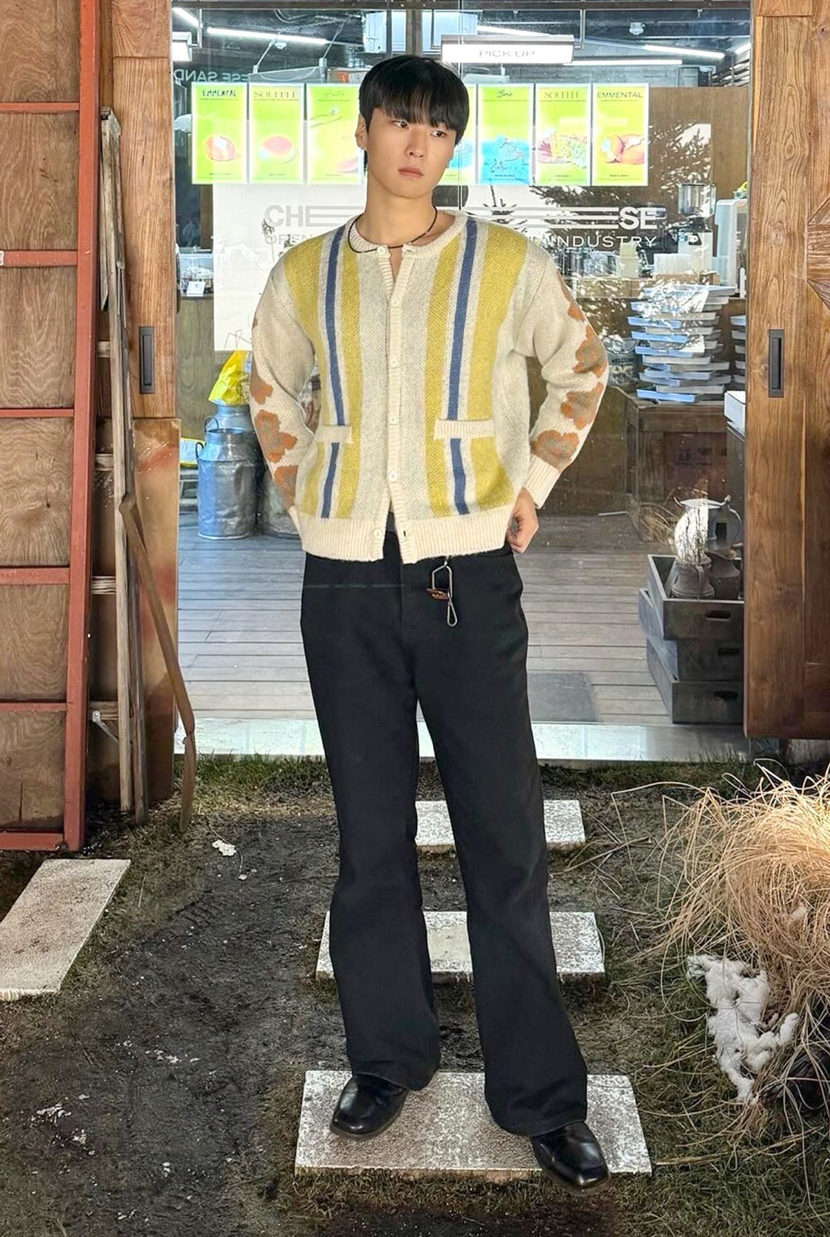 ★NCT WISH ユウシ 着用!!【KNITTED】Bulky Brush Flower Cardagan