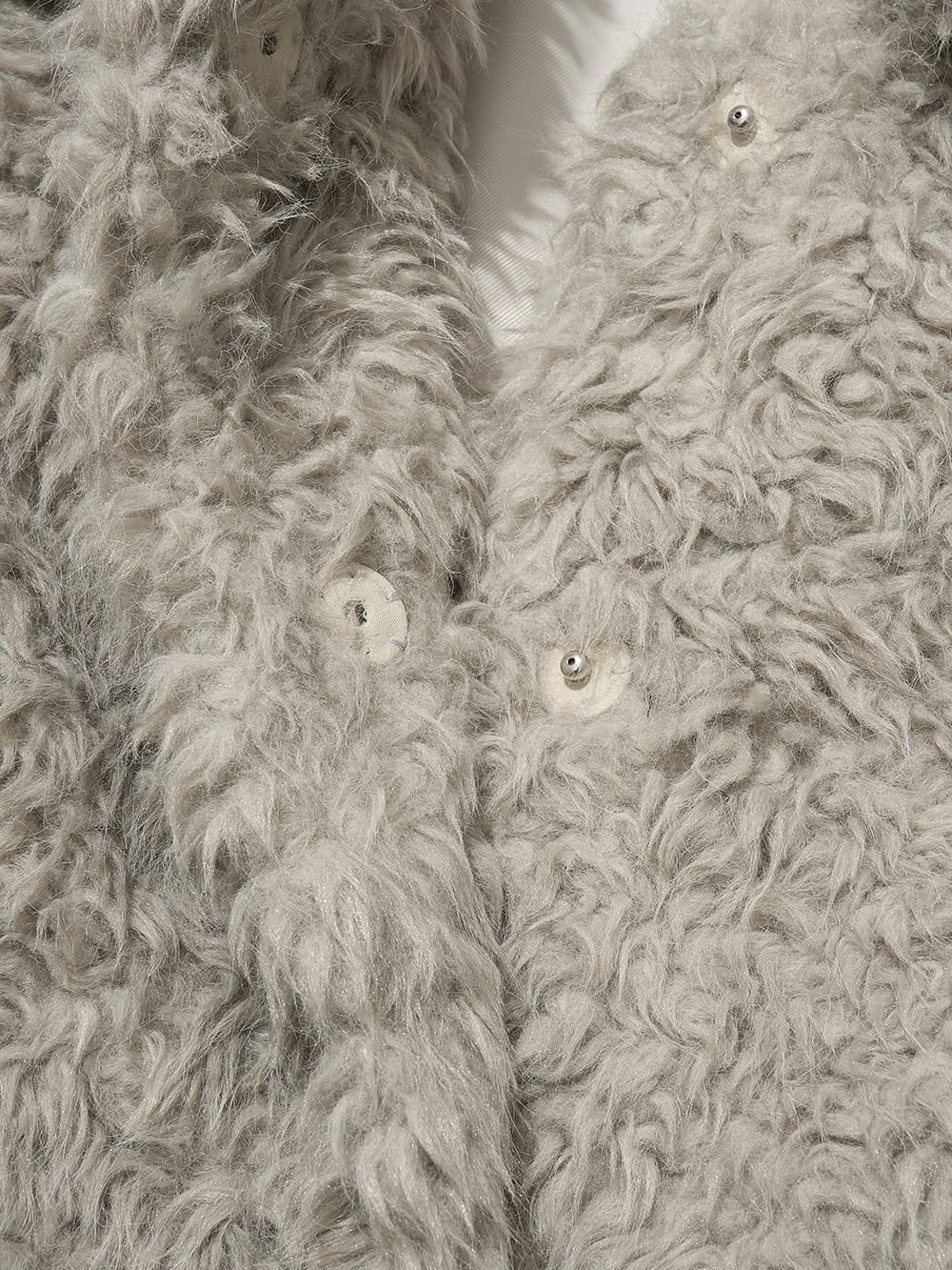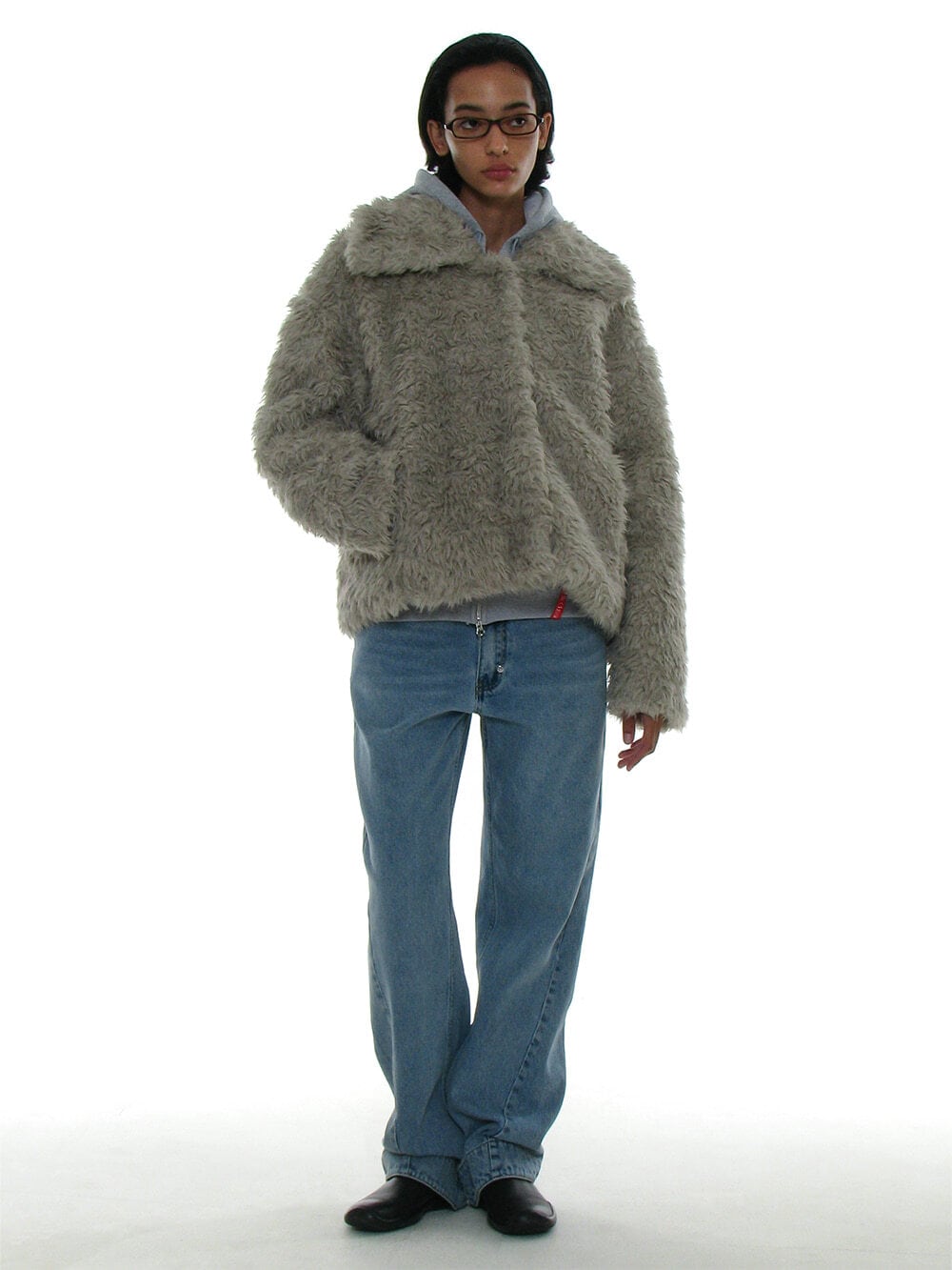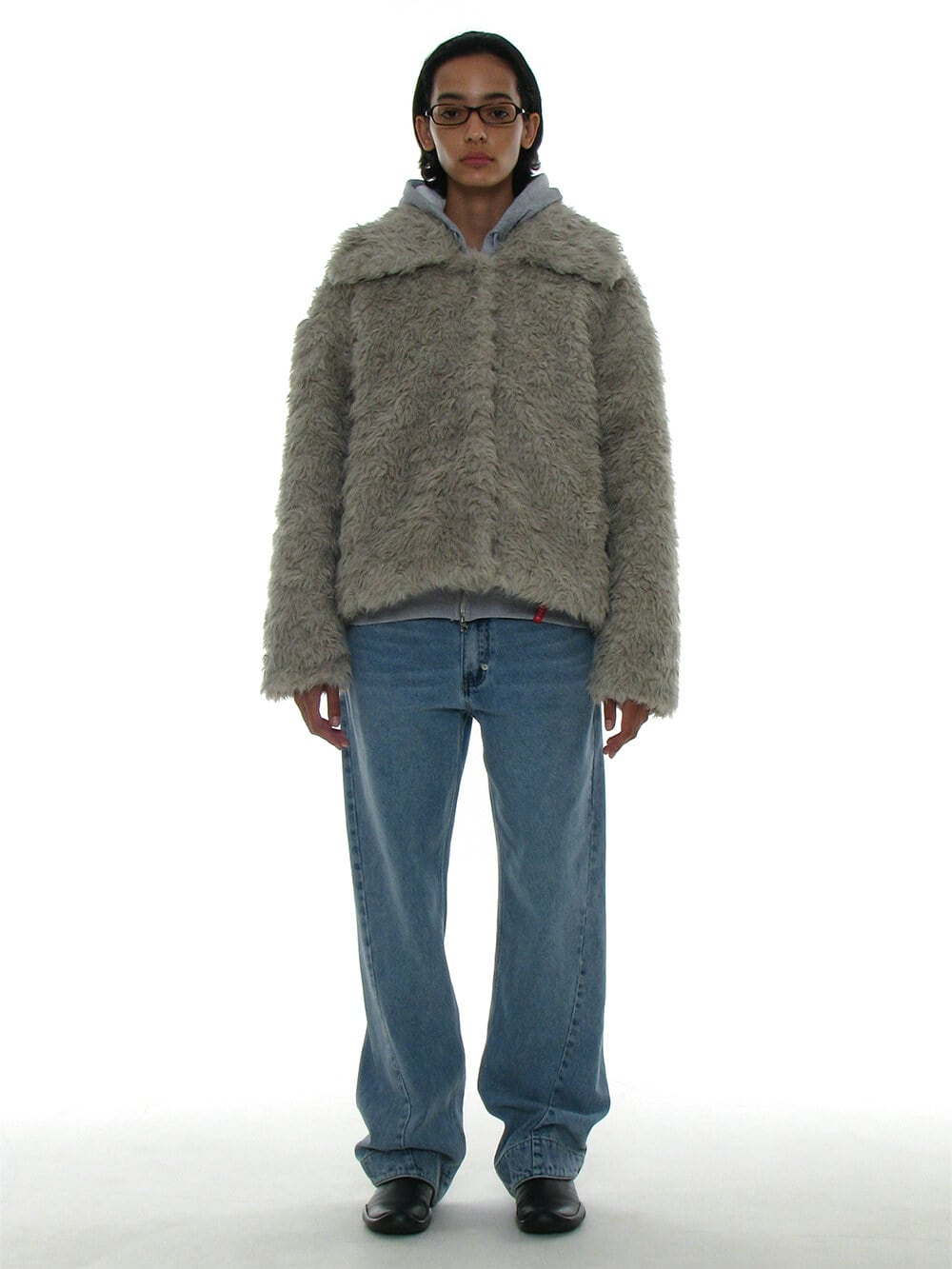 ★【PARTIMENTO】[WOMEN] WIDE COLLAR FLUFFY FUR COAT_LIGHT GREY