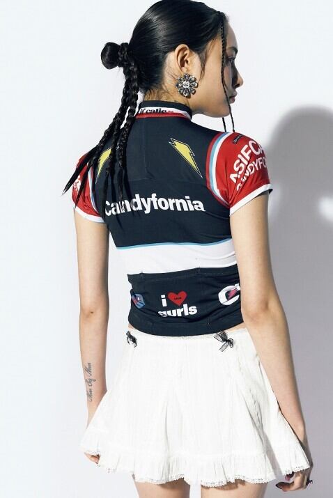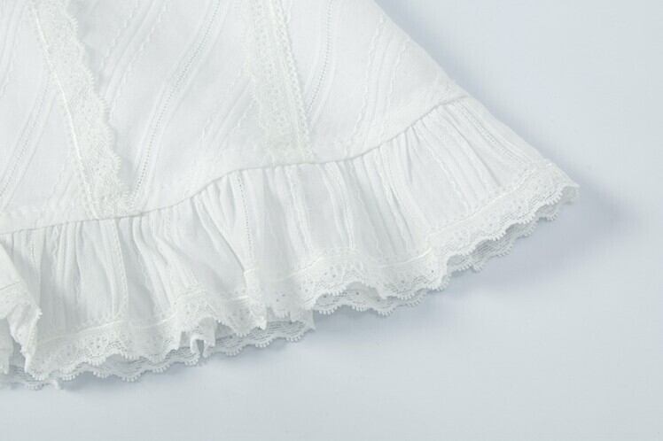 フロントはレースのパネルがあり、下部はフリルのディテールが特徴です。