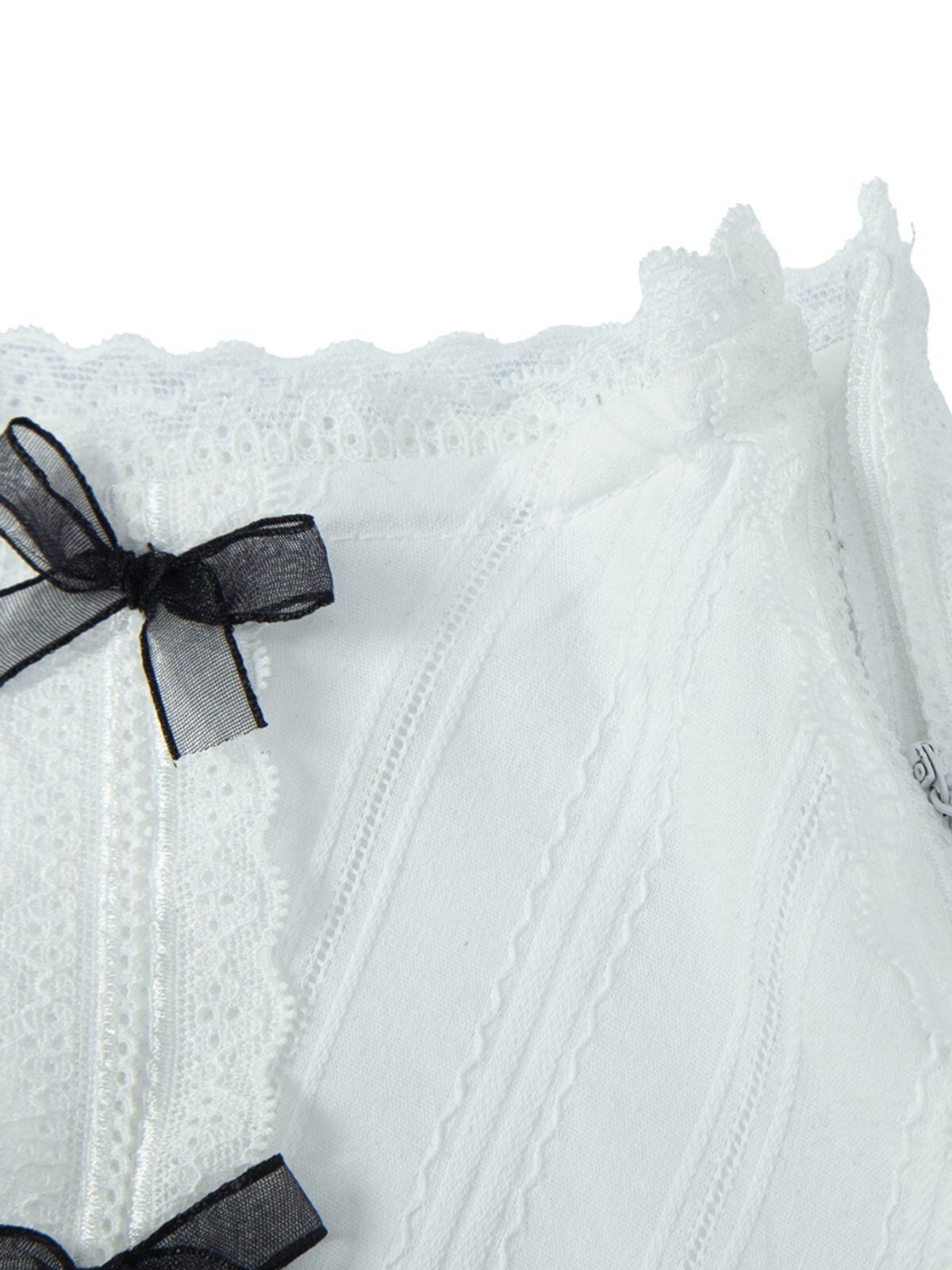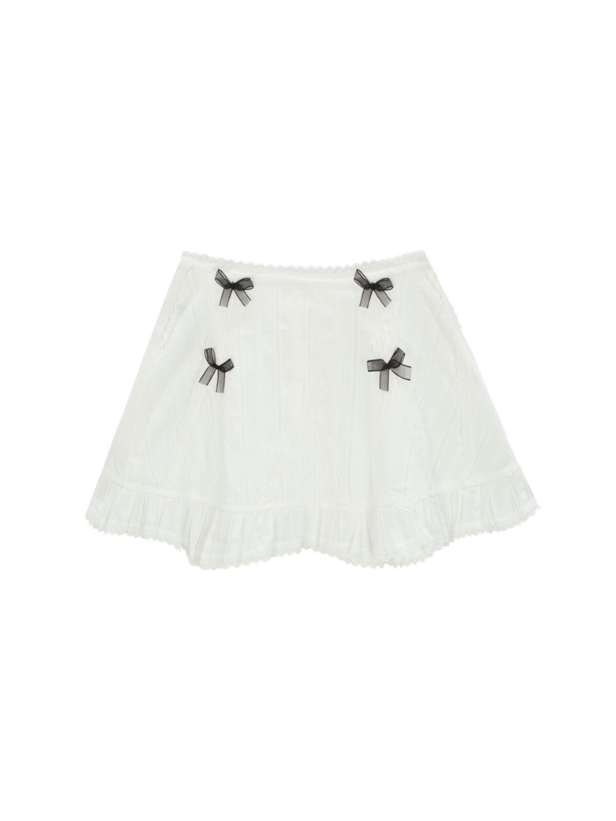 ラブリーなデザインのミニスカートで、リボンのディテールがポイントです。