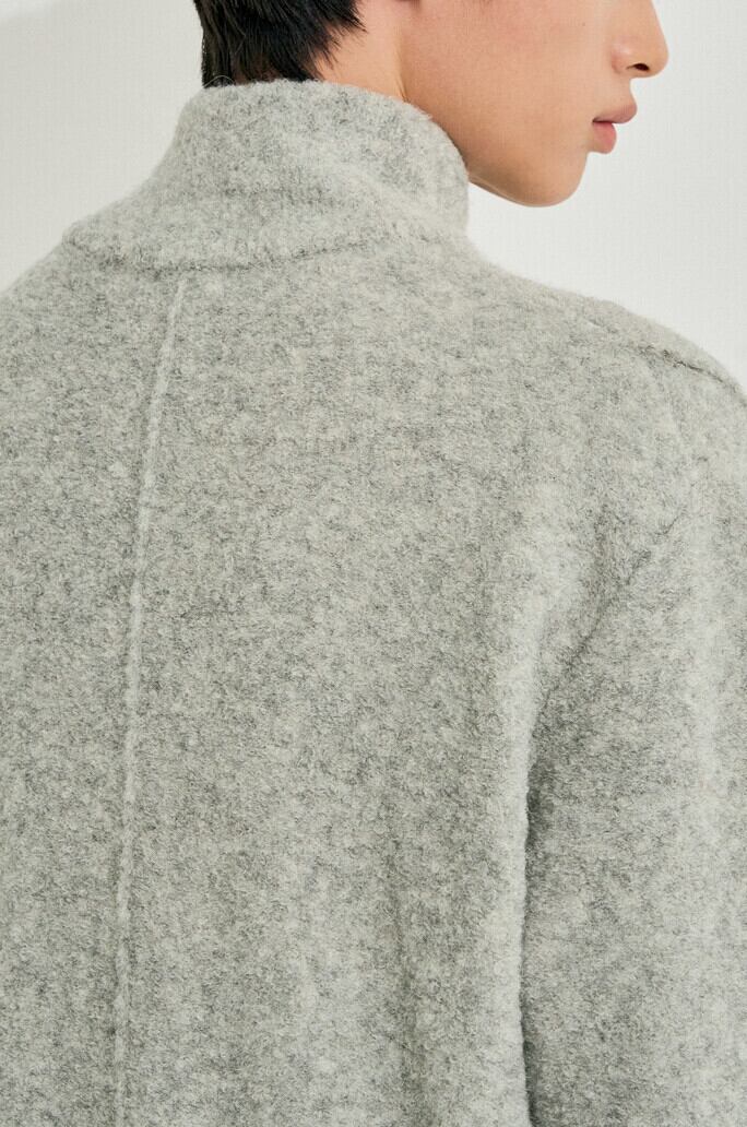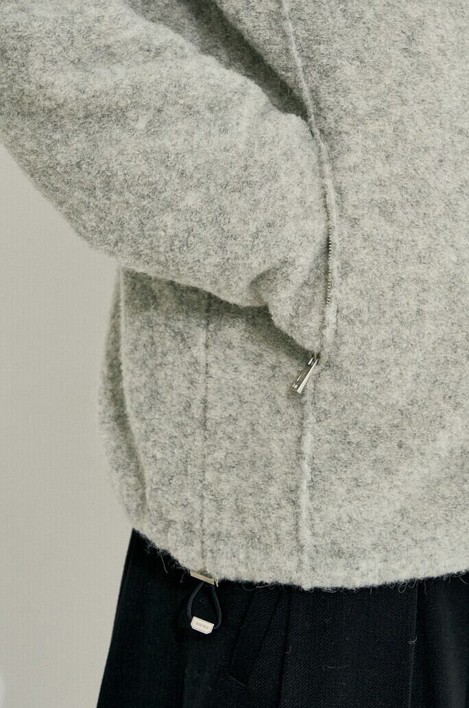 ヘアリーなテクスチャーとふんわりとしたタッチ感が引き立つアルパカとウール、スパンの混紡素材を使用してF/Wシーズンムードと共に楽な着心地を伝えてくれるトップです。 前面にハーフジップアップスタイルとボタンタップデザインで繊細に完成し、両サイドにファスナーポケットで実用性を高めました。 裾内部の両側に加えられたドローストリングでシルエットの調節が容易です。