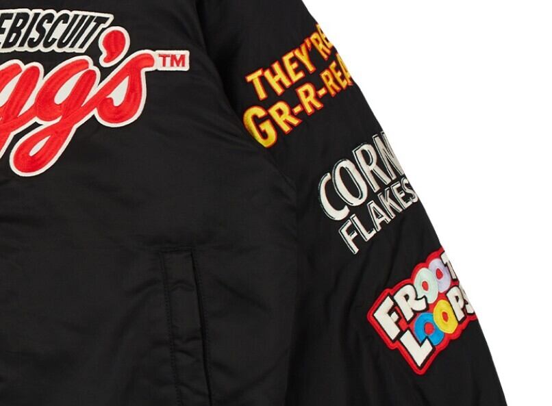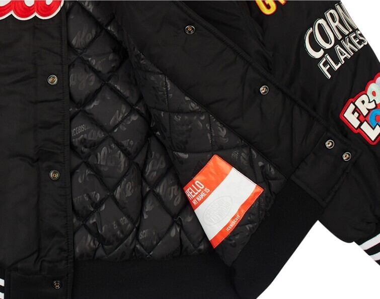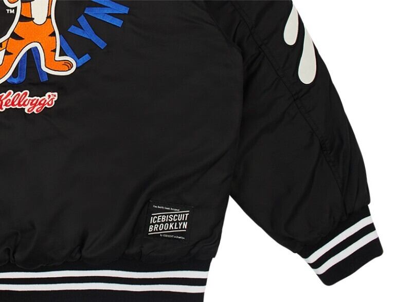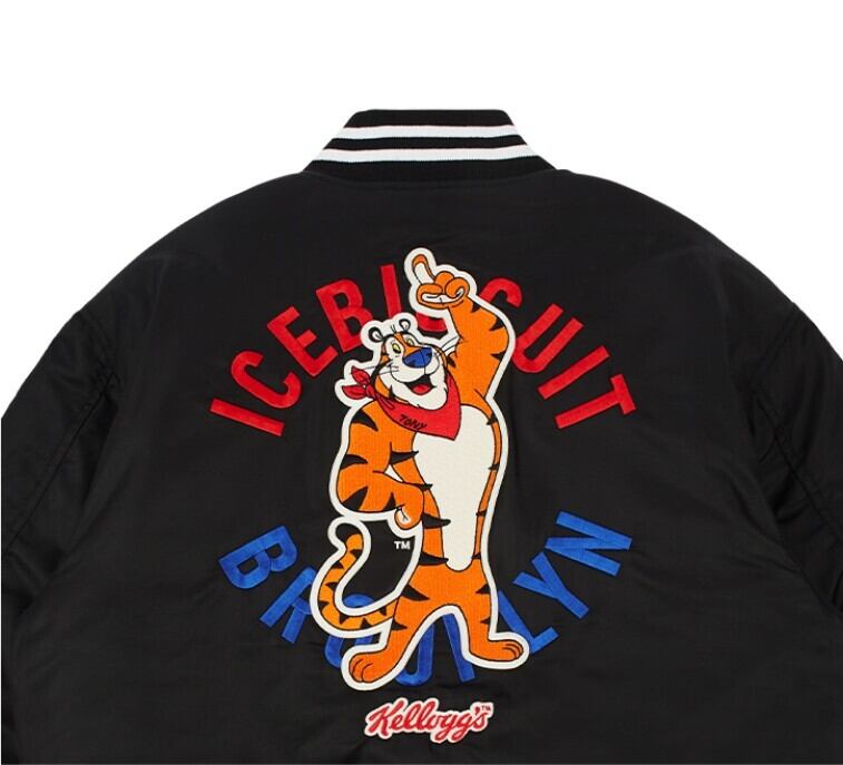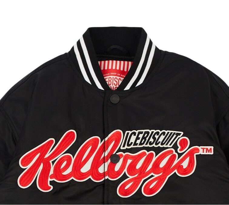 前面と後面のIcebiscuit X Kellogg'sならではのケロッグ刺繍が引き立つスタジアムジャケットです。