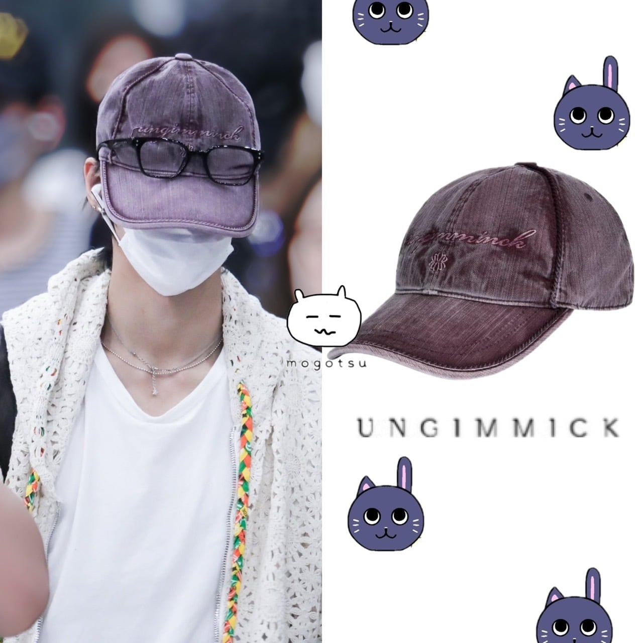 在庫少なめ!★RIIZE ウォンビン 着用!!【UNGIMMICK】Piping Logo Washed Cap - Purple