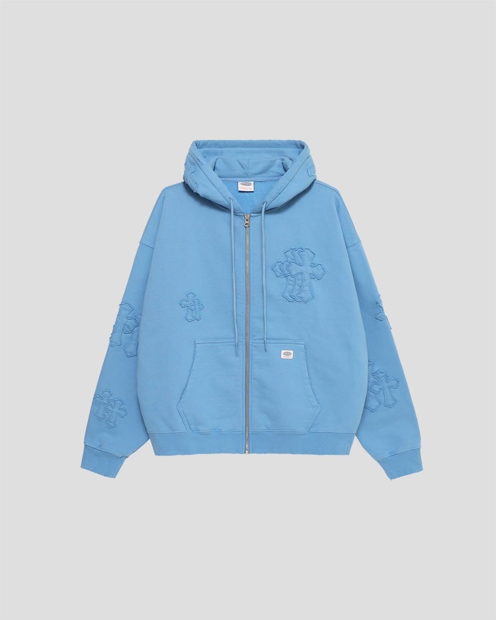 ★【Paragraph】DESTROYED CROSS ZIP HOODIE-BLUE