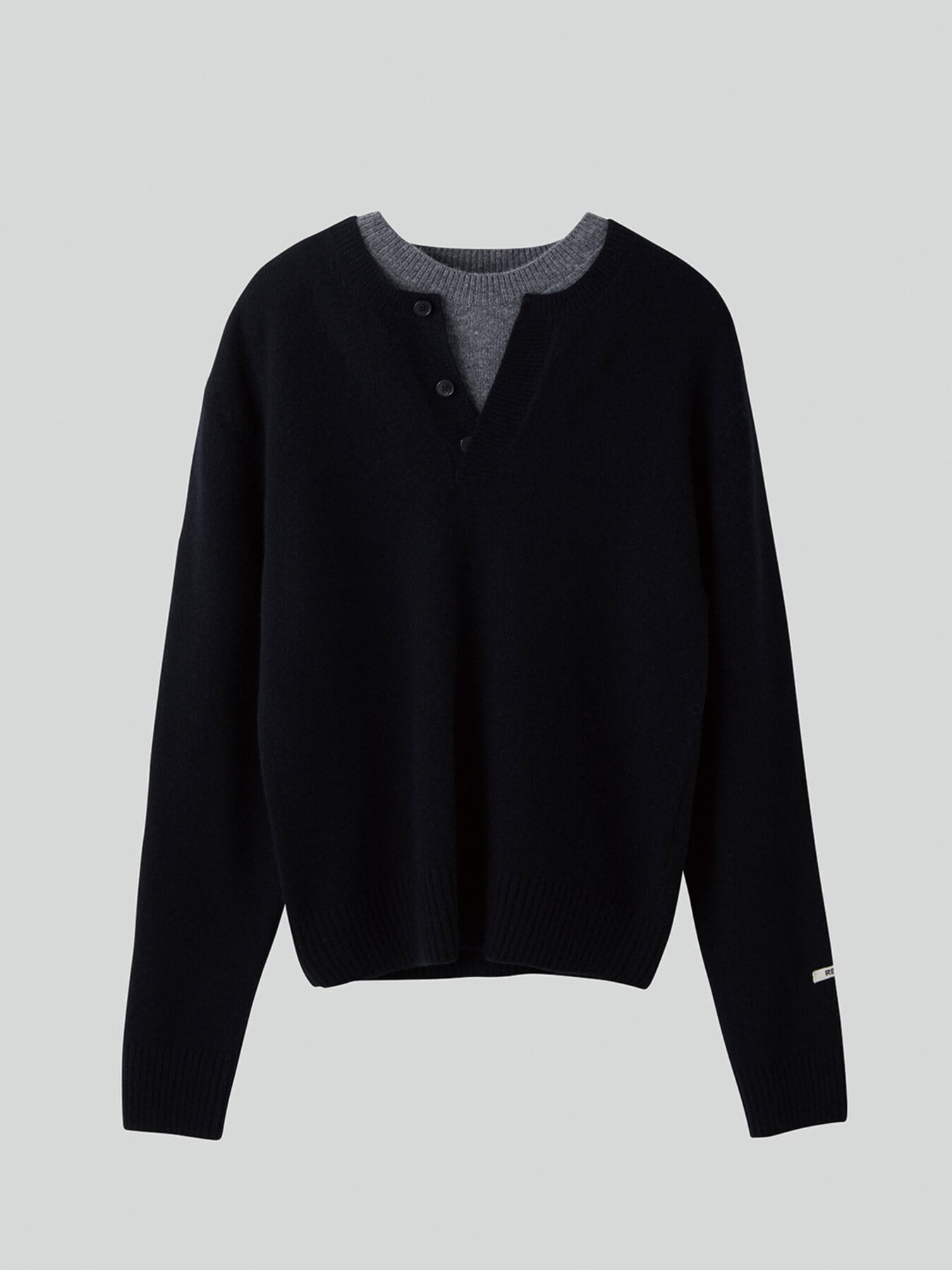 ★RIIZE ショウタロウ 着用!!【RECTO】DOUBLE LAYERS KNIT TOP (BLACK)