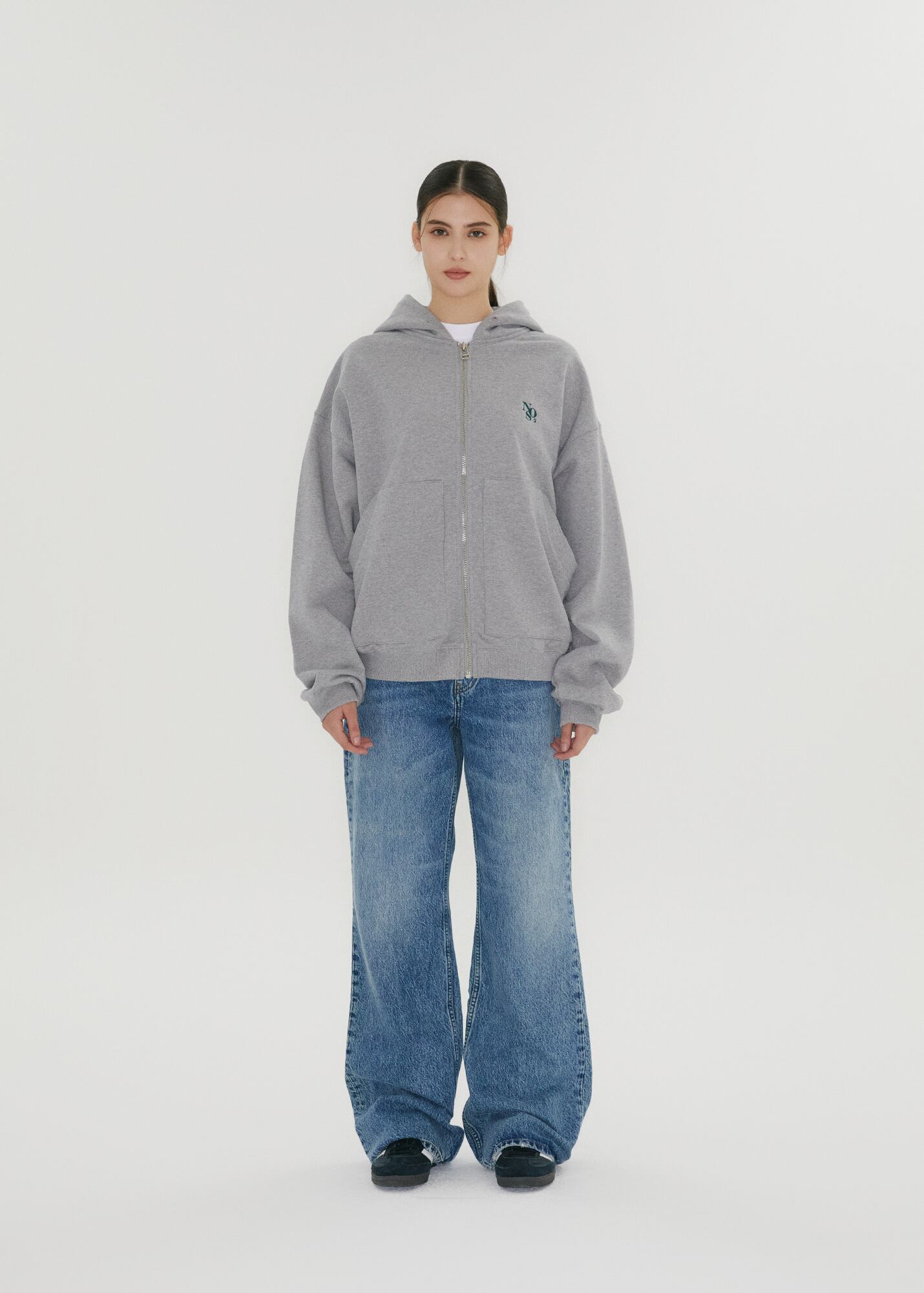 ★【NOS7】メインロゴ フード ジップアップ - GREY