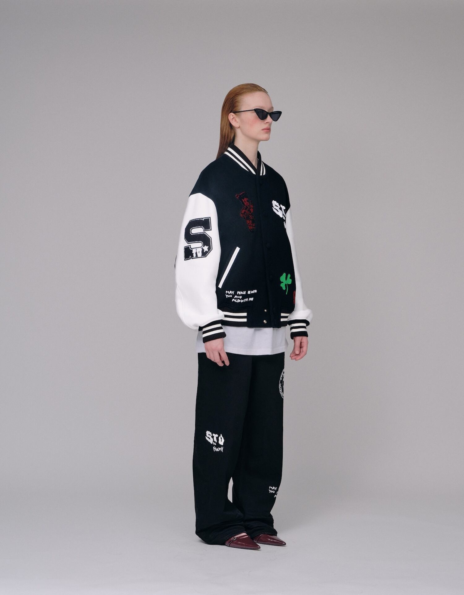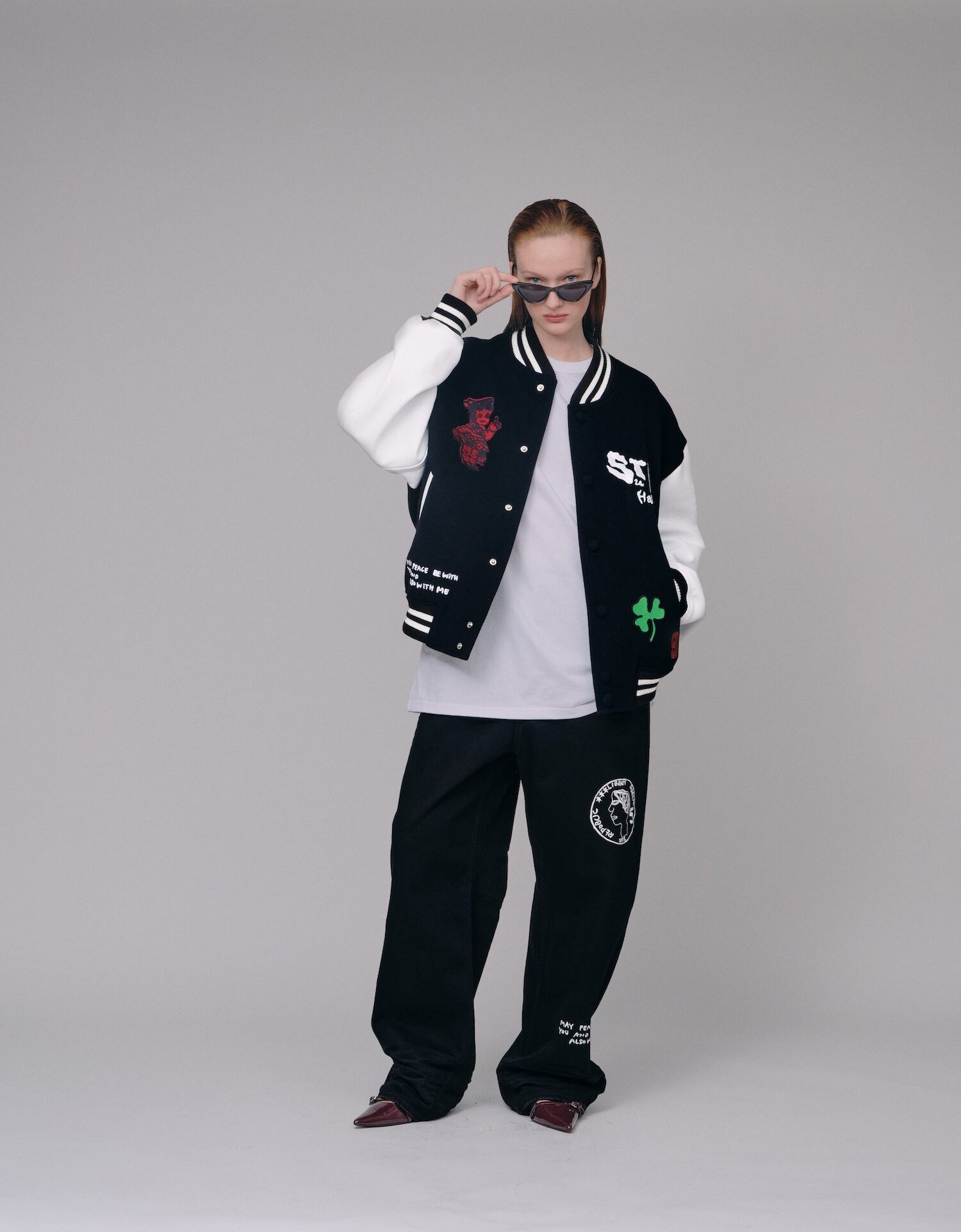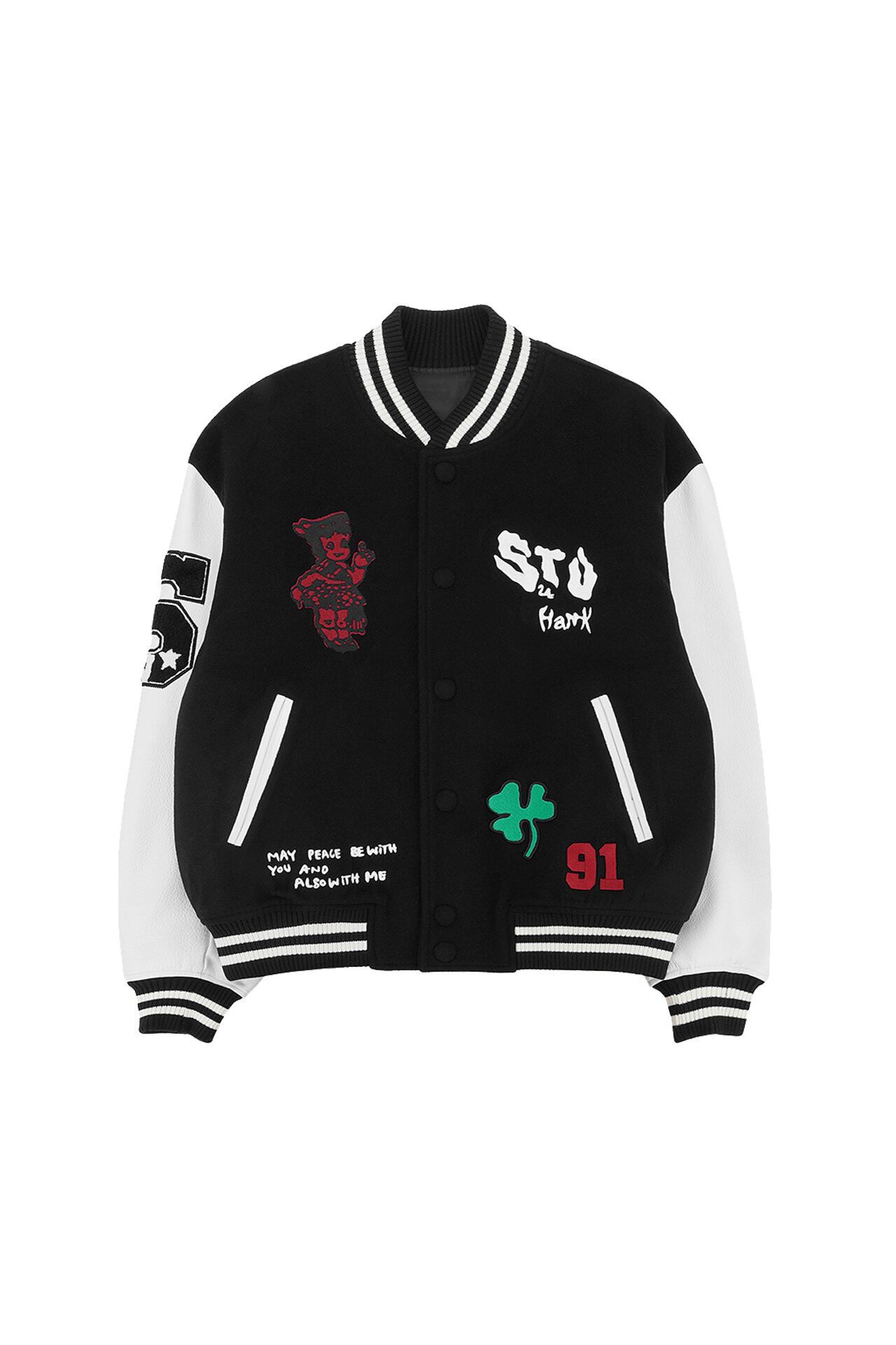 ★Stray Kids アイエン 着用!!【STU】STU X HANK Varsity Jacket Black