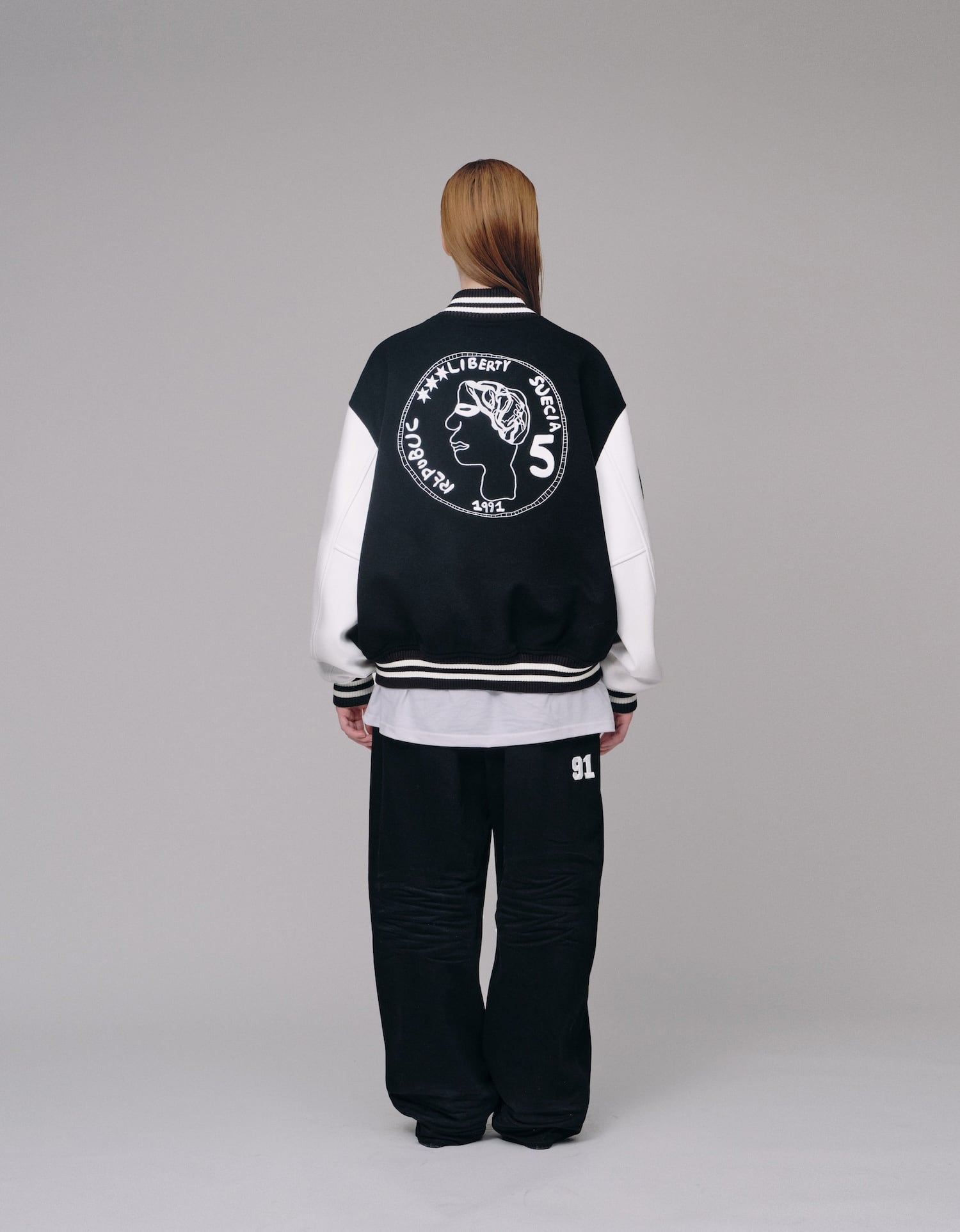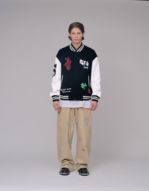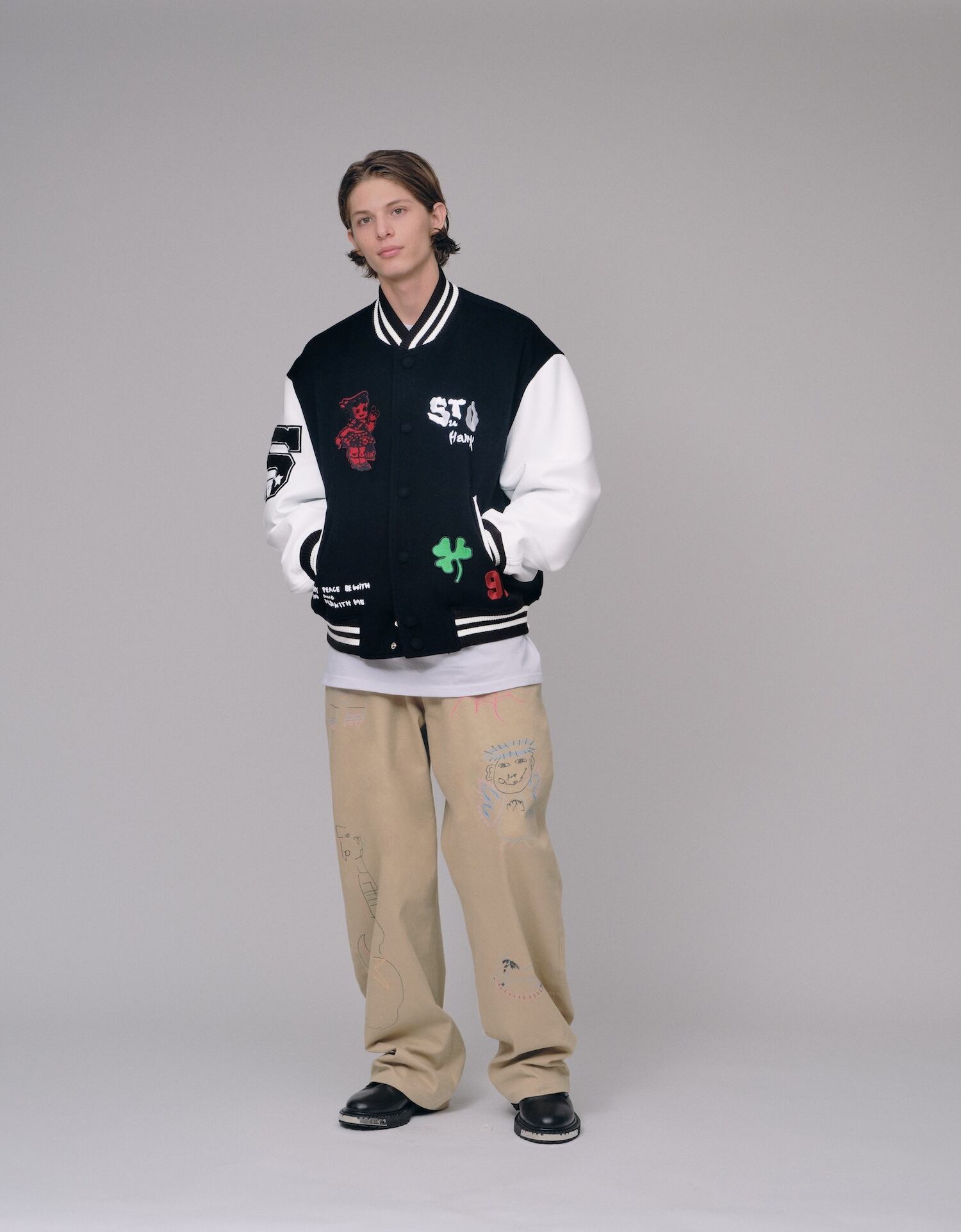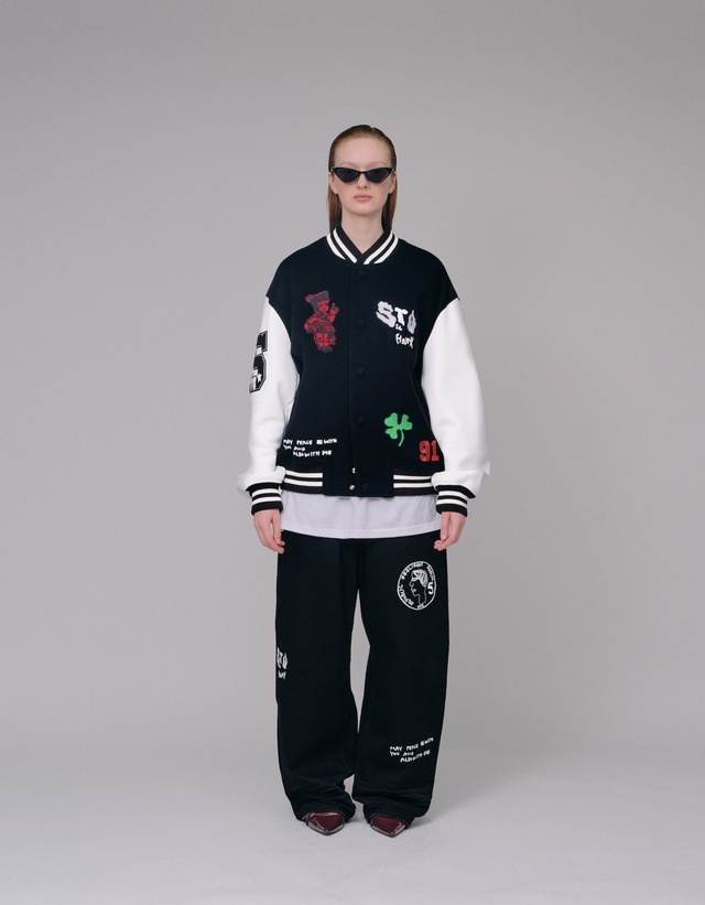 ★Stray Kids アイエン 着用!!【STU】STU X HANK Varsity Jacket Black