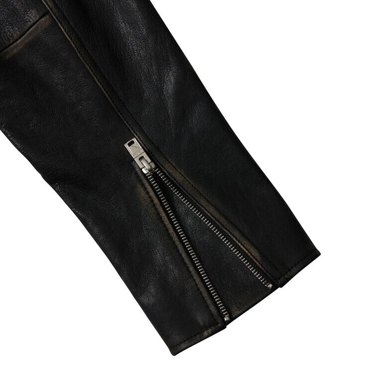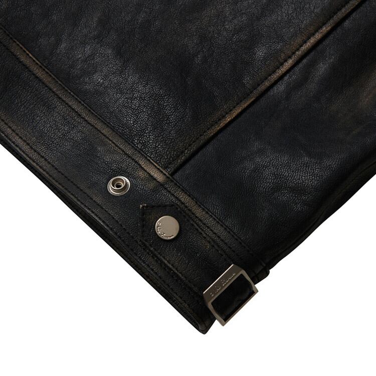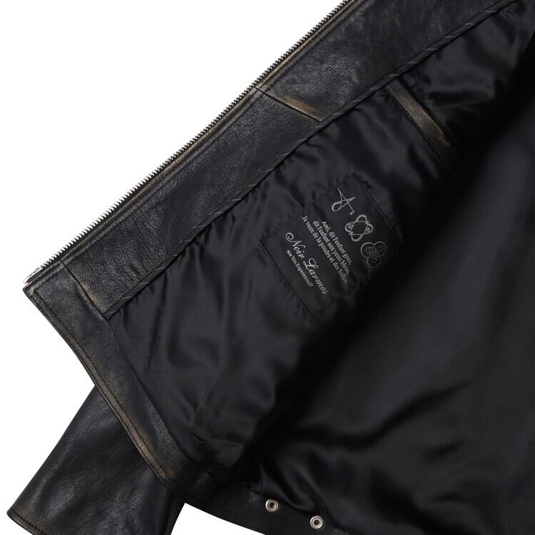 Noir Larmesでは、イタリアのテナリーOnly Frank社と15年間協業し、環境にやさしい素材で原料を使用するベジタブルタンニングを基盤にDistress効果を演出し、クロム(化学染料)基盤で無塗装された一般的なAsportato Lambskinに比べて優れたクオリティと人為的でないラフな効果を持つことがAsportato Full Grain Vegetable Lambskin アーティクルの特徴です。