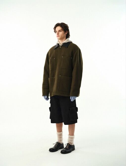 ワークジャケットモチーフのOVER-FITウールコートです。
