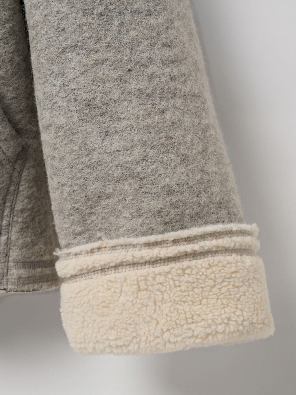 袖口と裾をカッティングで仕上げ、ウールの二重生地のテクスチャーを生活