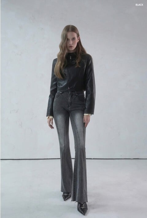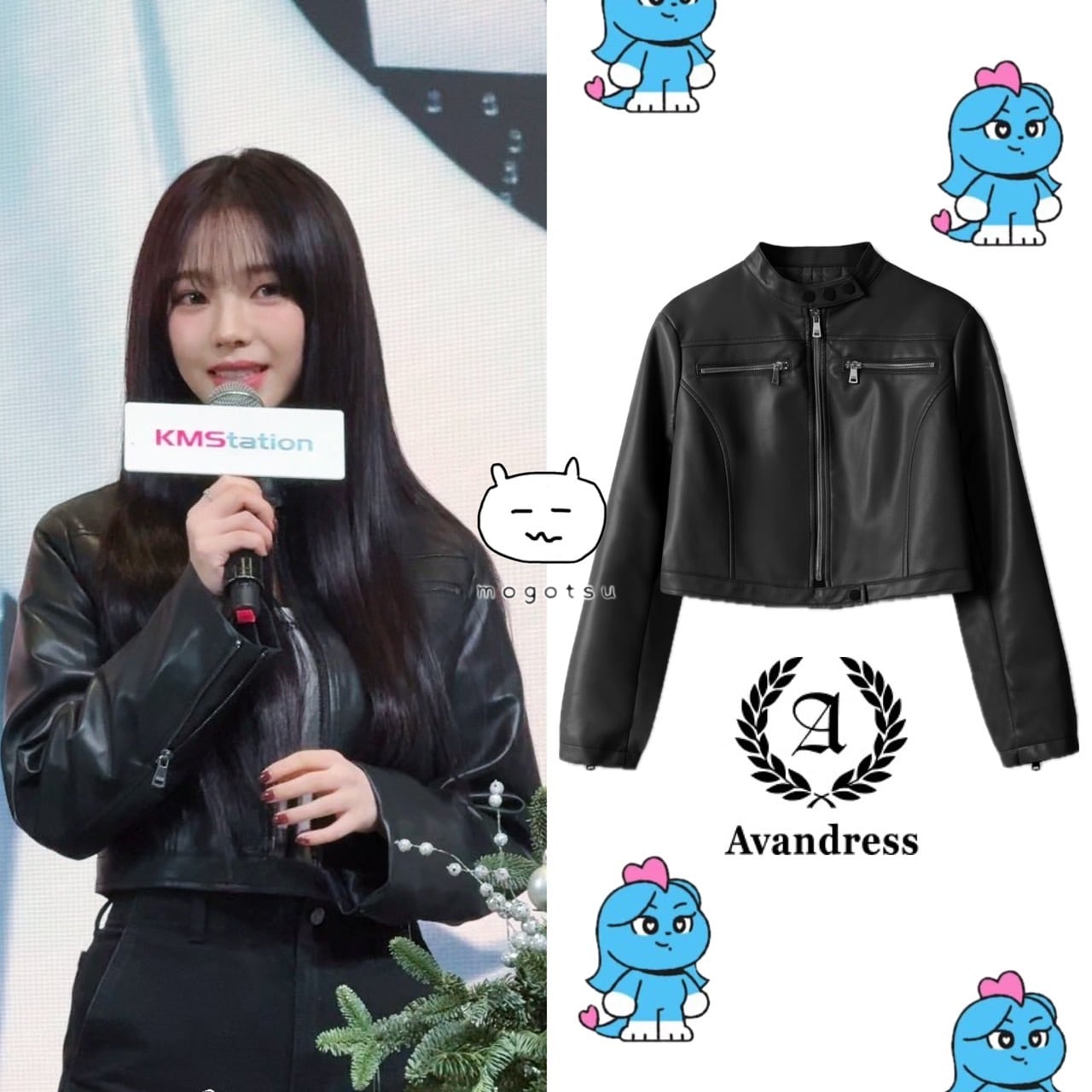 ★aespa カリナ 着用!!【AVANDRESS】Rider Art Leather Jacket BLACK