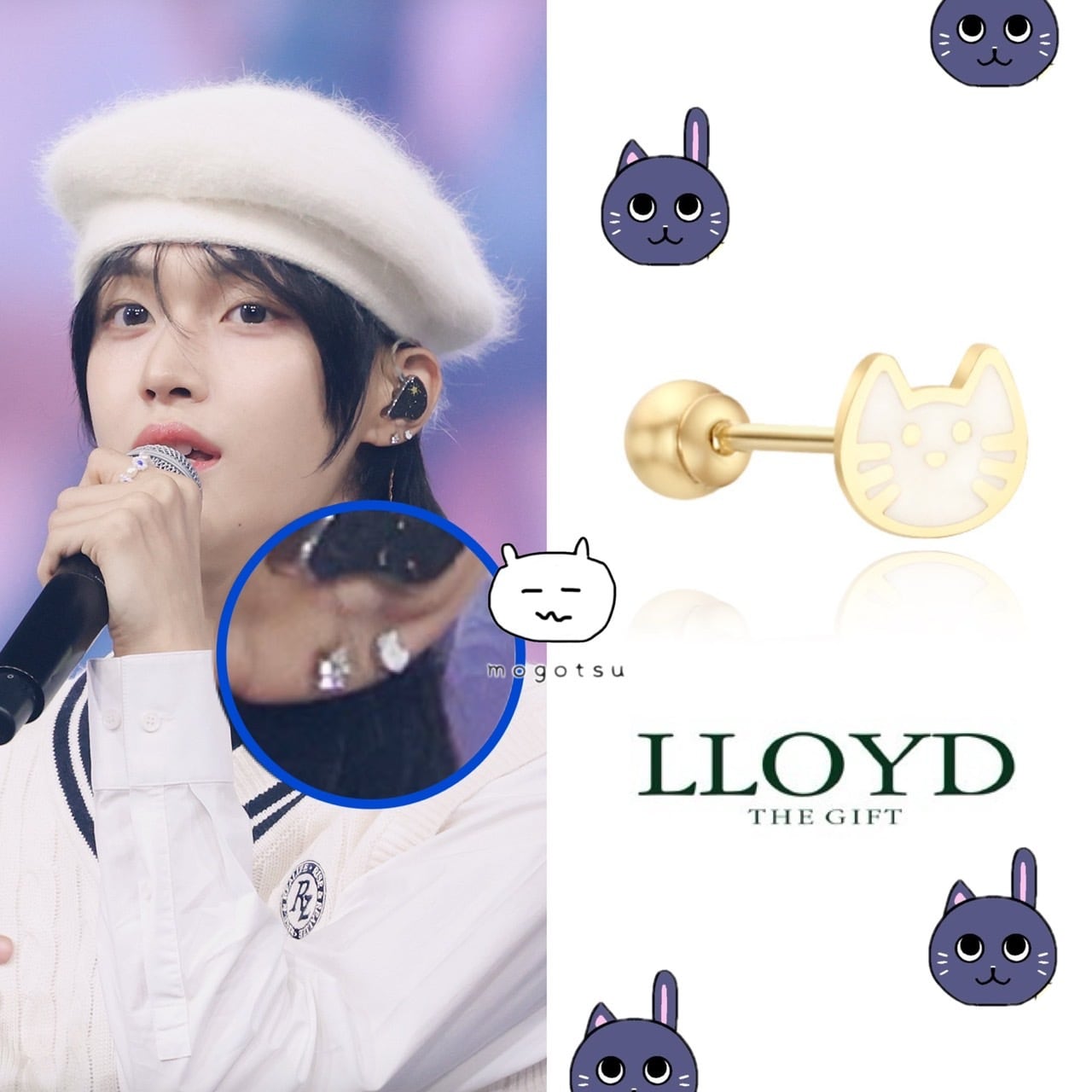 ★RIIZE ウォンビン 着用!!【LLOYD】ホワイト ねこ 14K ピアス