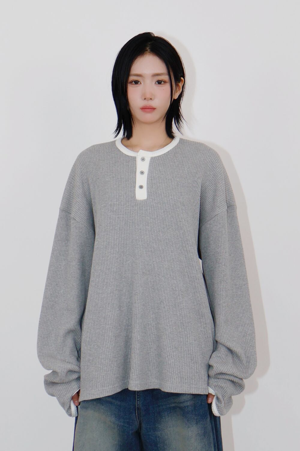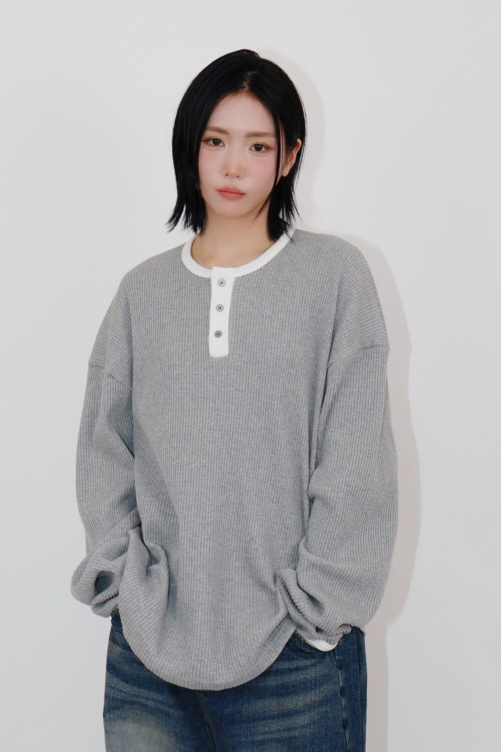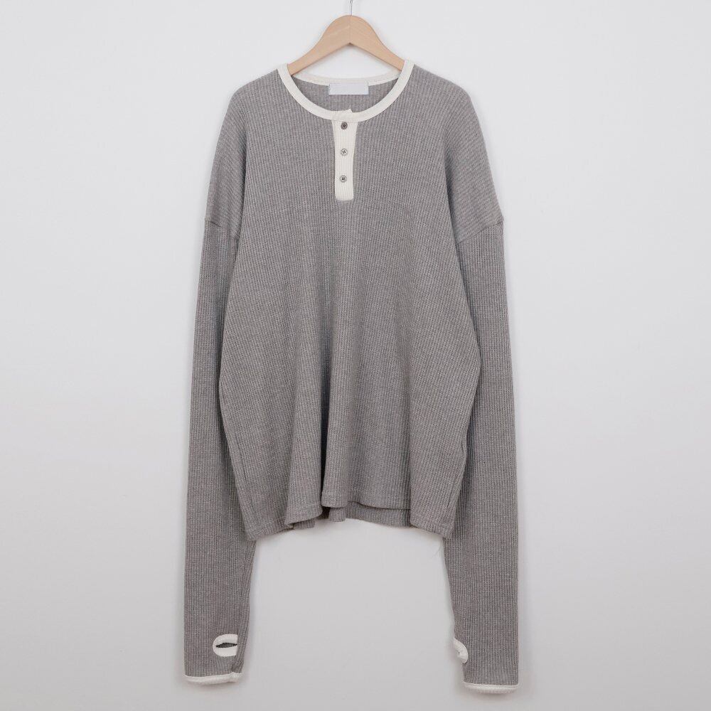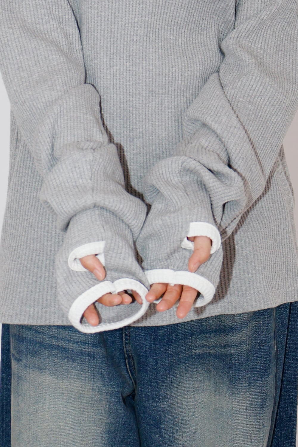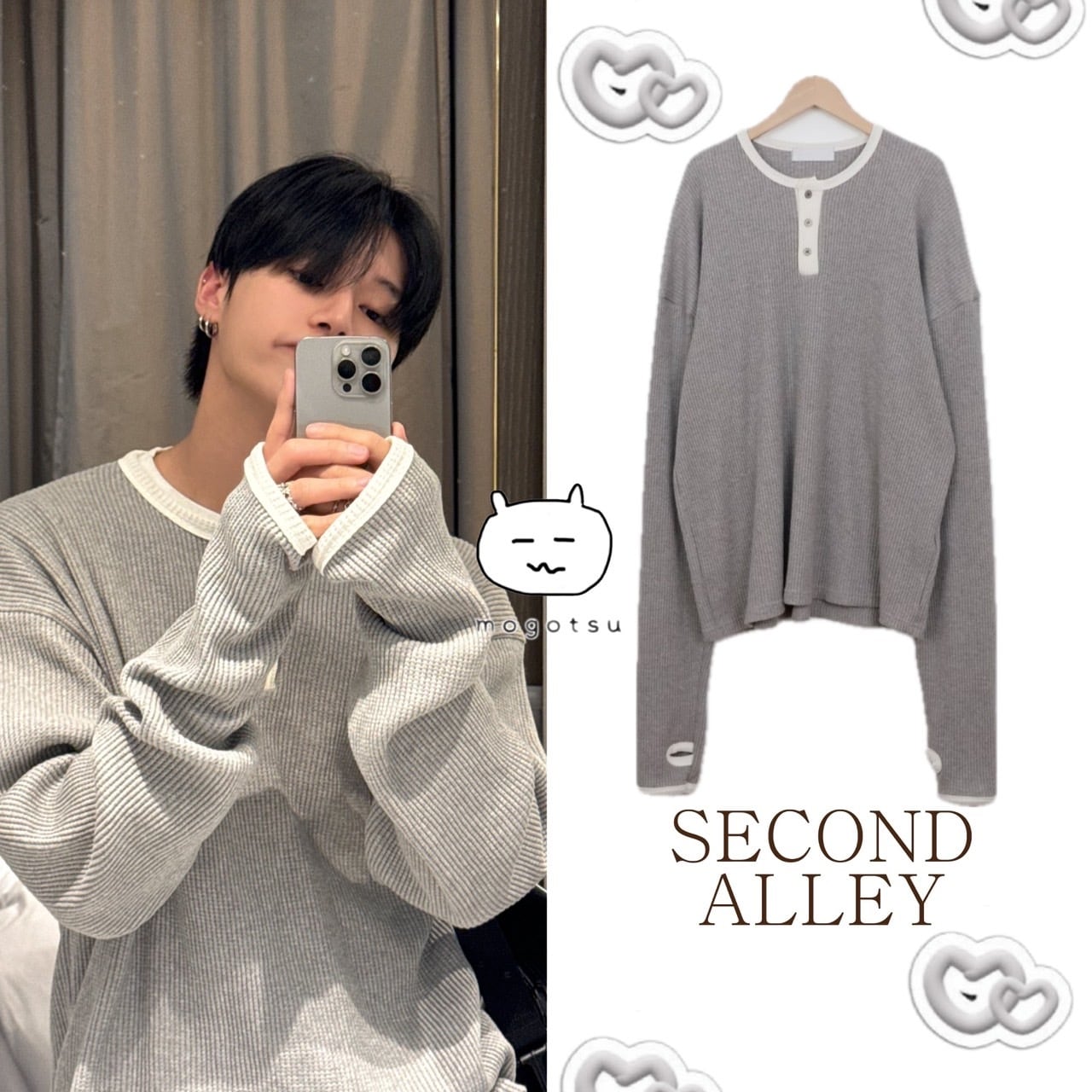 ★ATEEZ ウヨン 着用!!【SECOND ALLEY】ワッフル ヘンリーネック ハンドウォーマー ロングスリーブ
