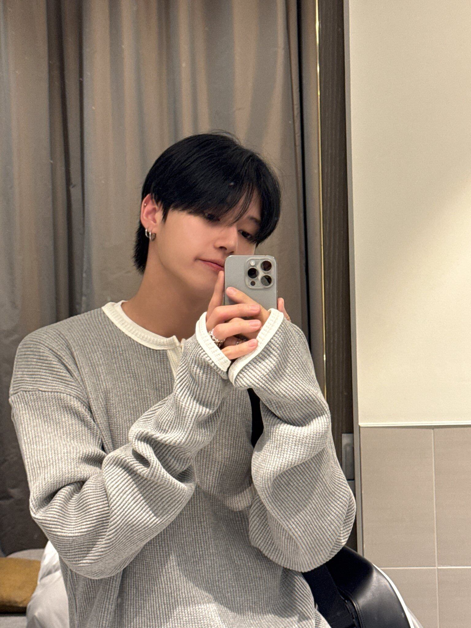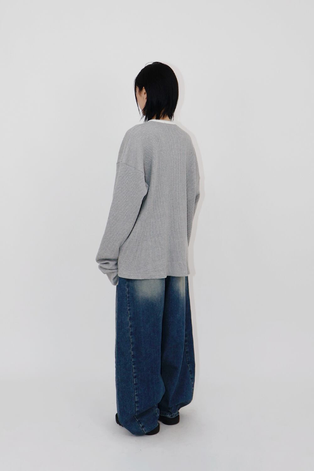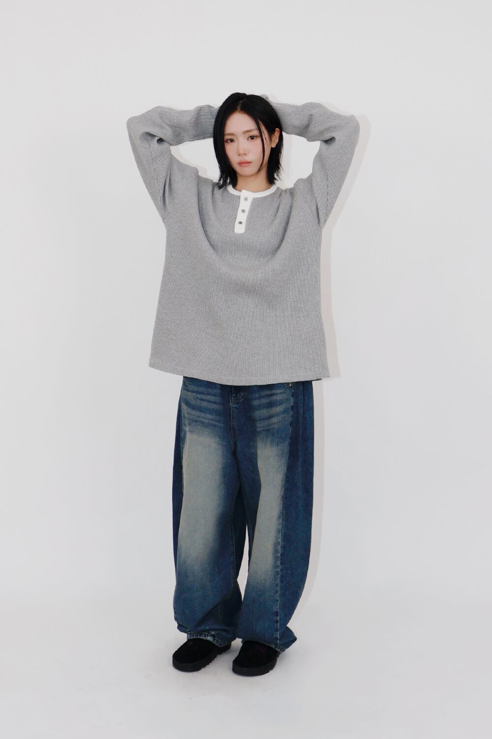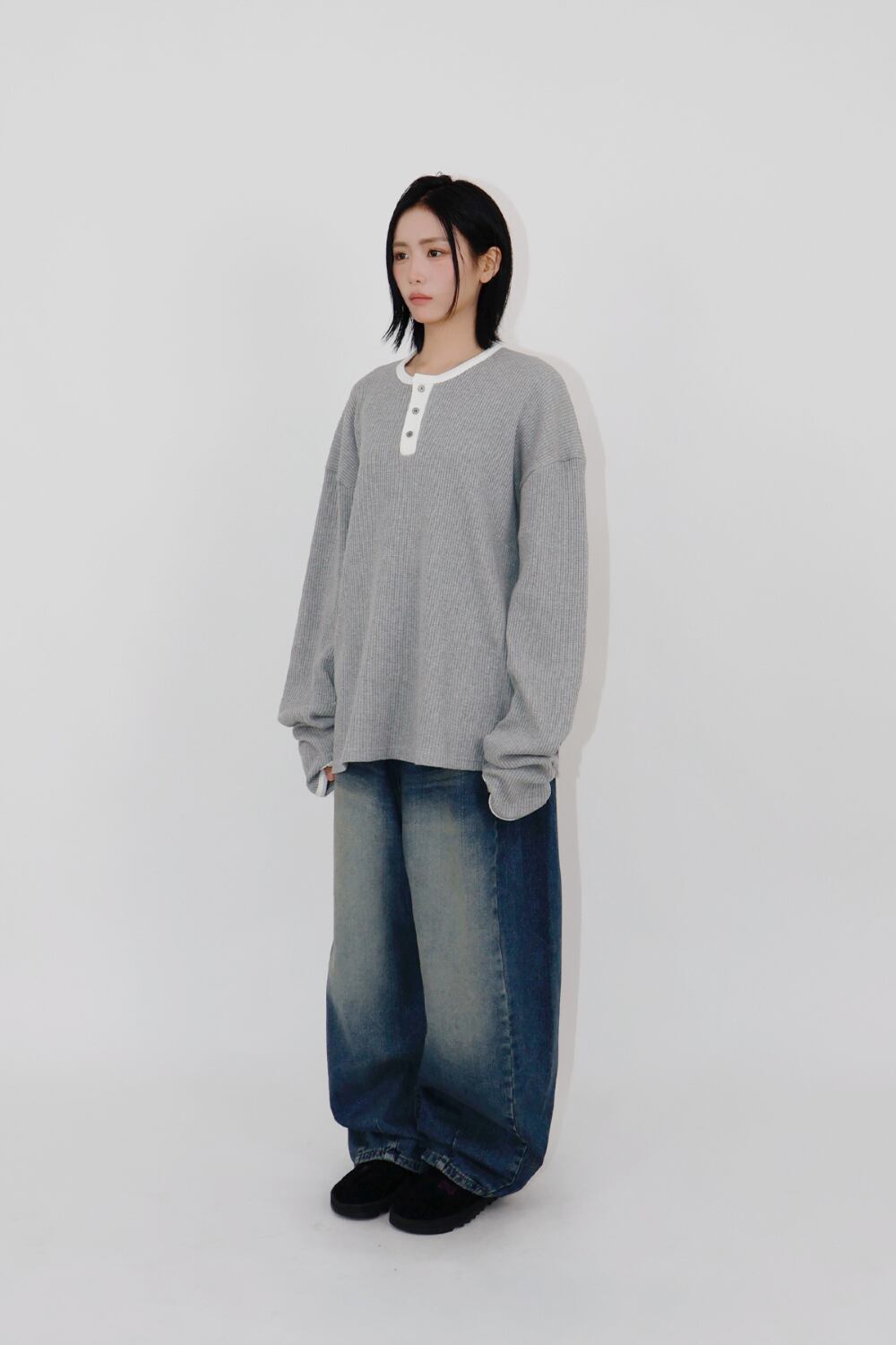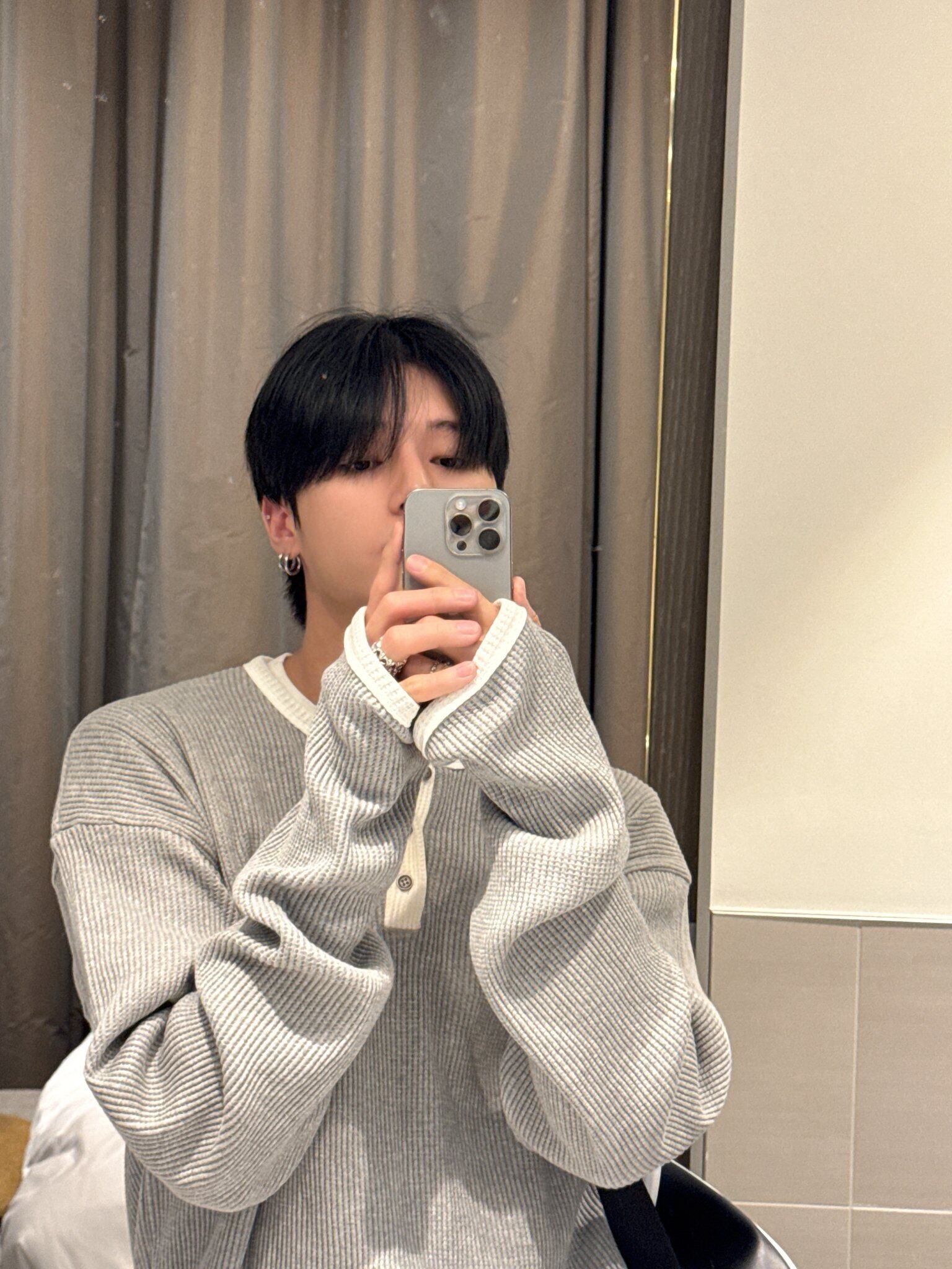 ★ATEEZ ウヨン 着用!!【SECOND ALLEY】ワッフル ヘンリーネック ハンドウォーマー ロングスリーブ