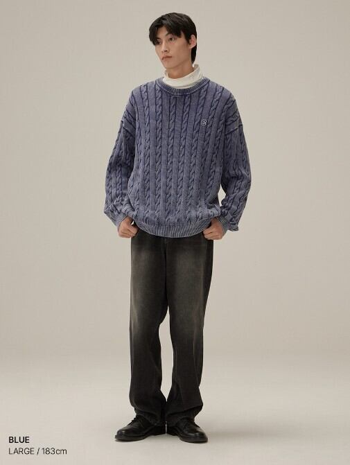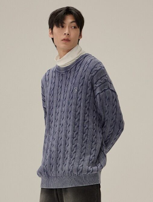 クラシックなケーブル組織にウォッシング加工でヴィンテージムードを