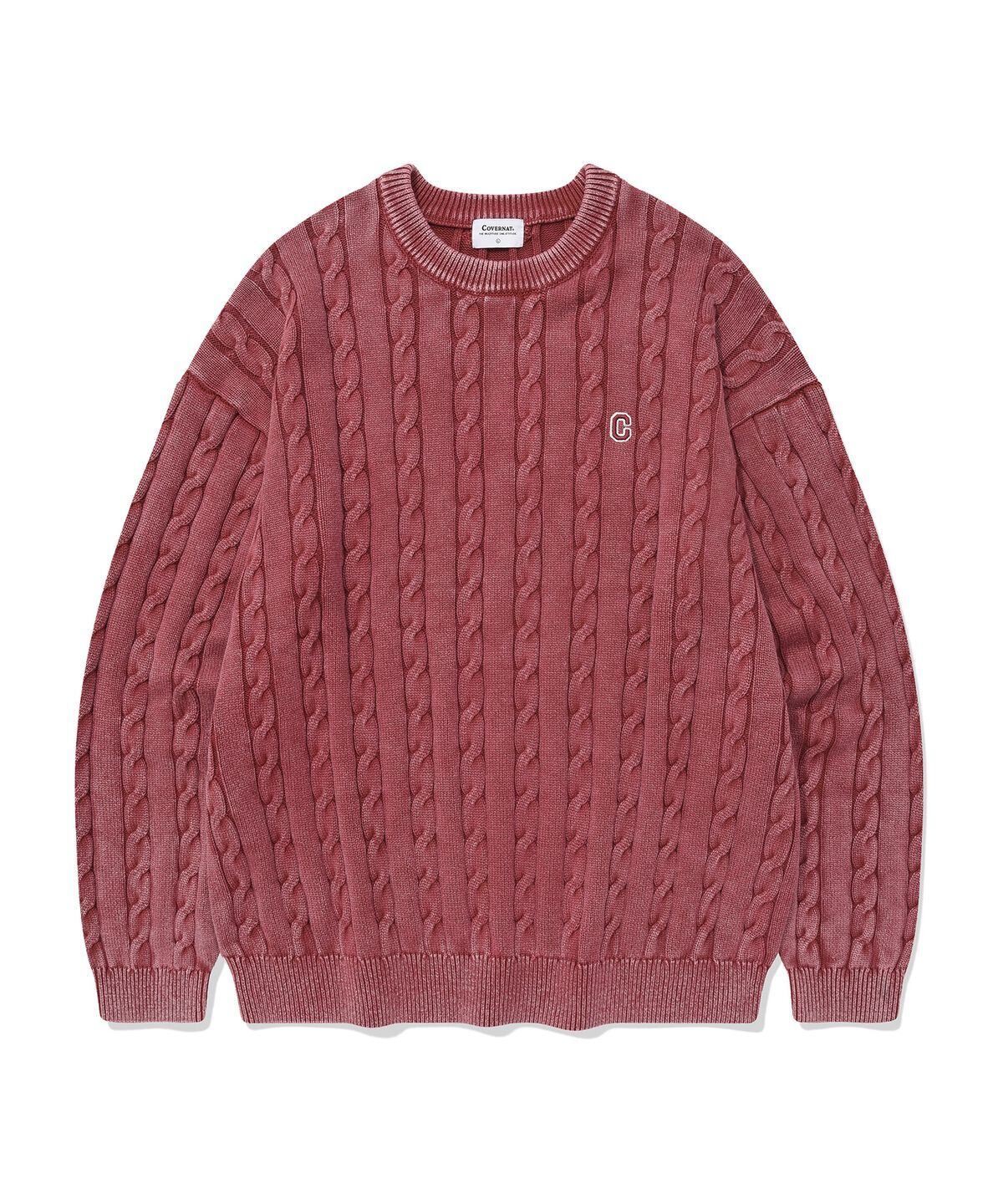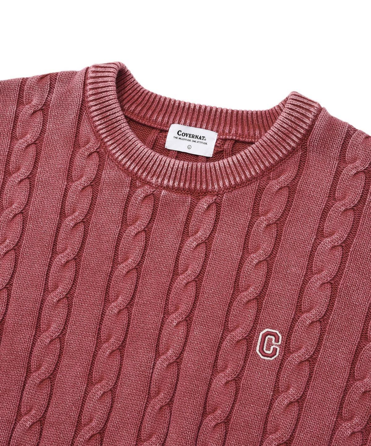 ★THE BOYZ チュハンニョン 着用!!【COVERNAT】C Logo Cable Stonewashing Crew Neck Knitwear Deep Red