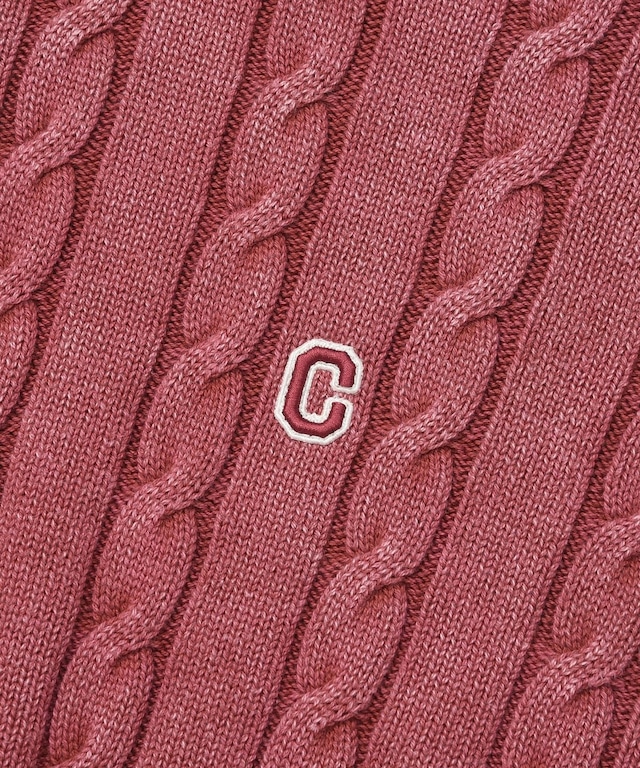 プラスする C ロゴ ケーブル ストーン ウォッシング クルーネック ニット