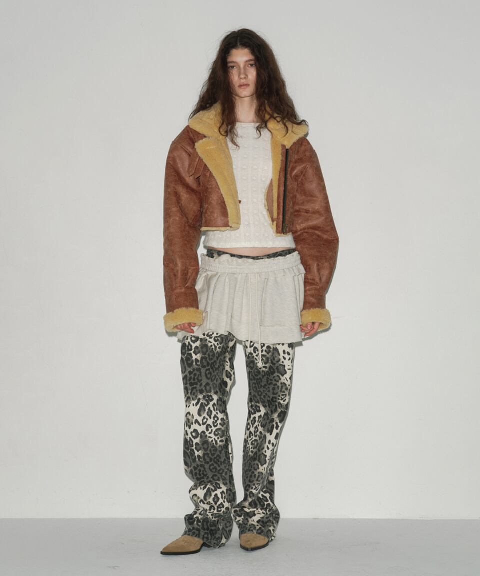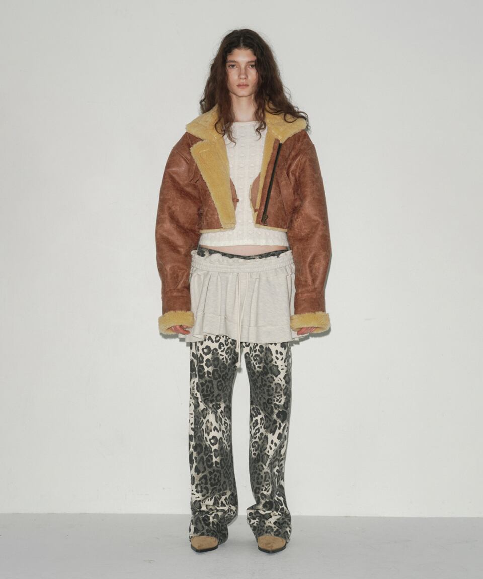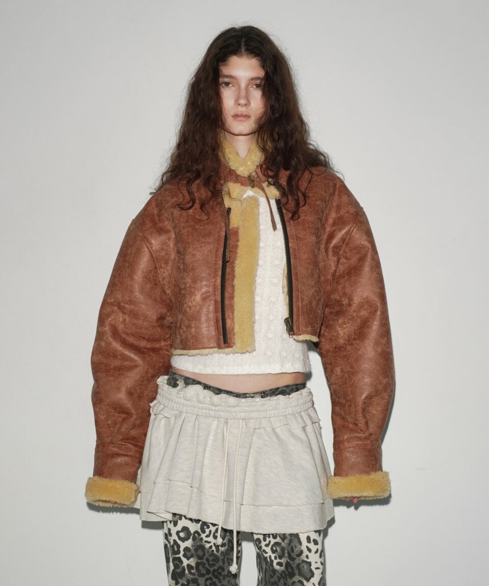 ★IVE アンユジン 着用!!【S/E/O】CROPPED SHEARLING FAUX LEATHER JACKET