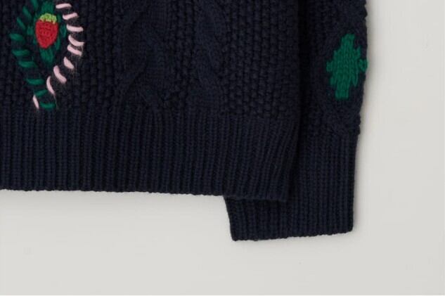 フロントのハンドメイドステッチディテールが特徴のニットです。