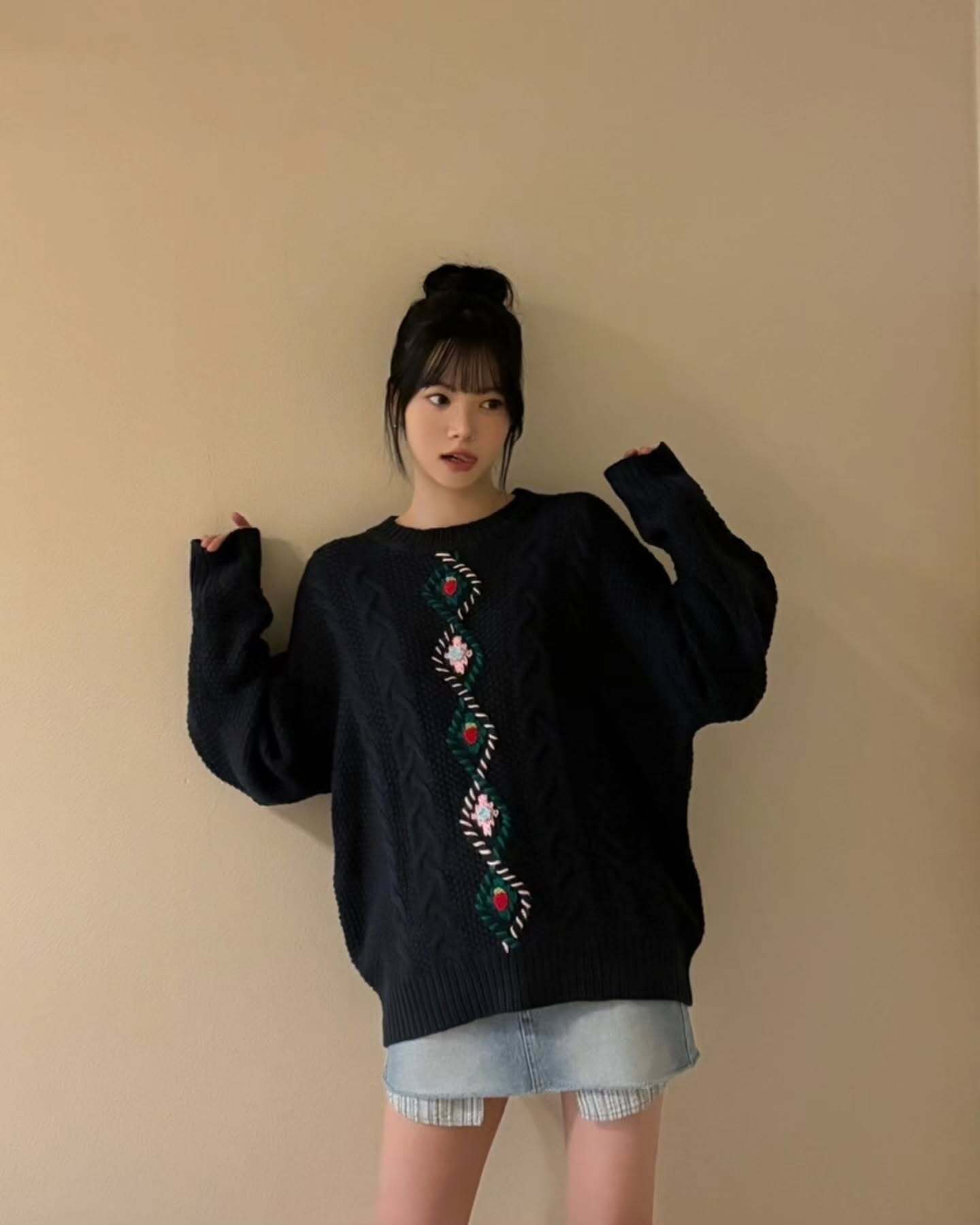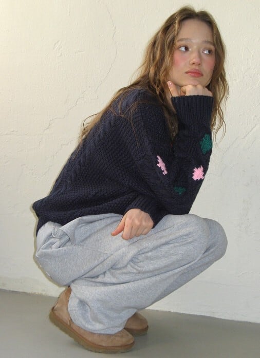 ★LE SSERAFIM ウンチェ 着用!!【RONRON】BERRY HANDMADE POINT FISHERMAN PULLOVER KNIT NAVY