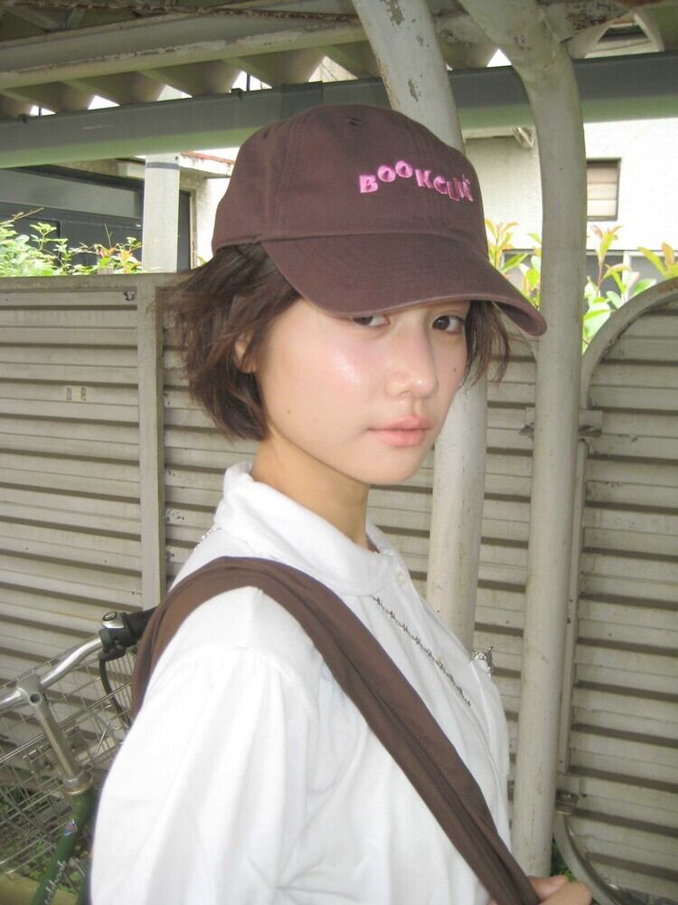 -幼虫に似たbookclub刺繍がポイントになっているキャップ